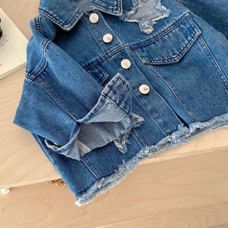 Girl Fashion Five-Pointed Star Lapel Jackets Loose Skirt Denim Two-Piece Set
