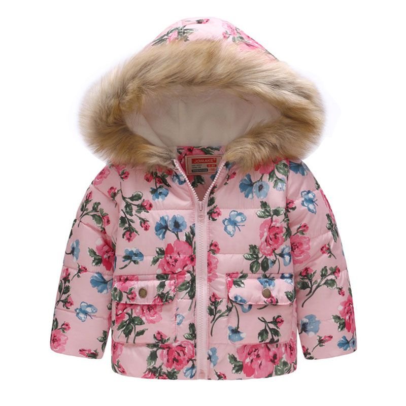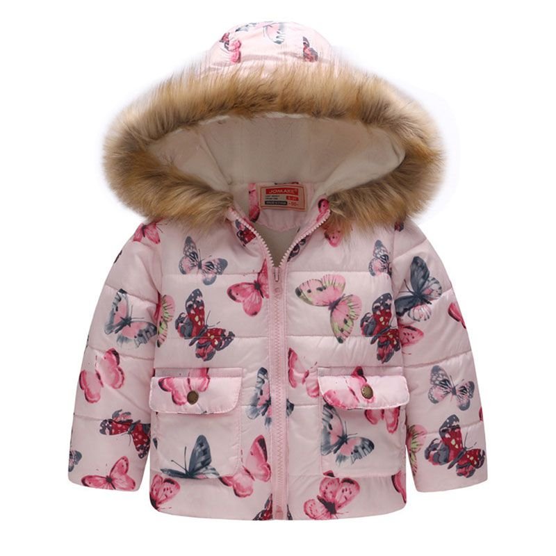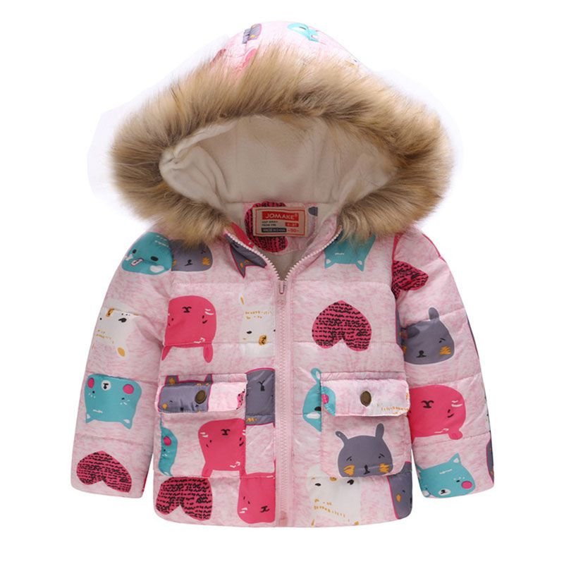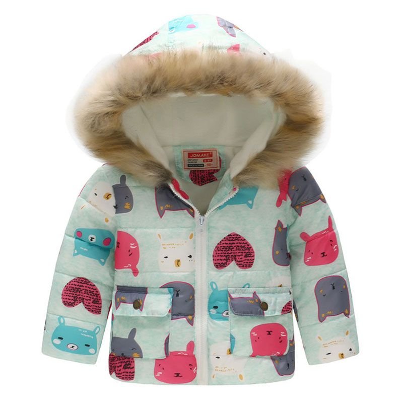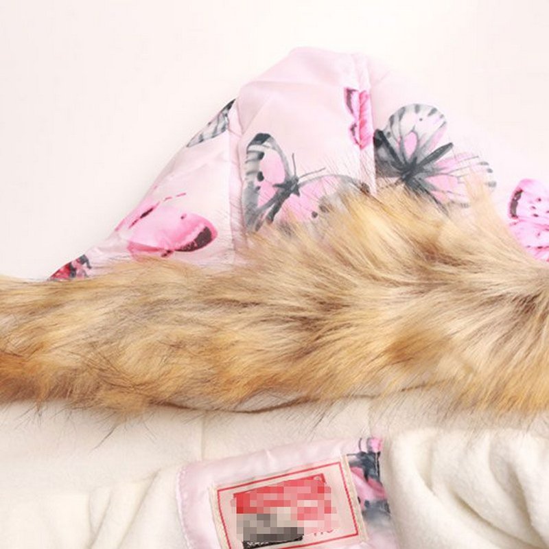 Girl Fashion Print Fur Collar Short Hooded Warm Coat