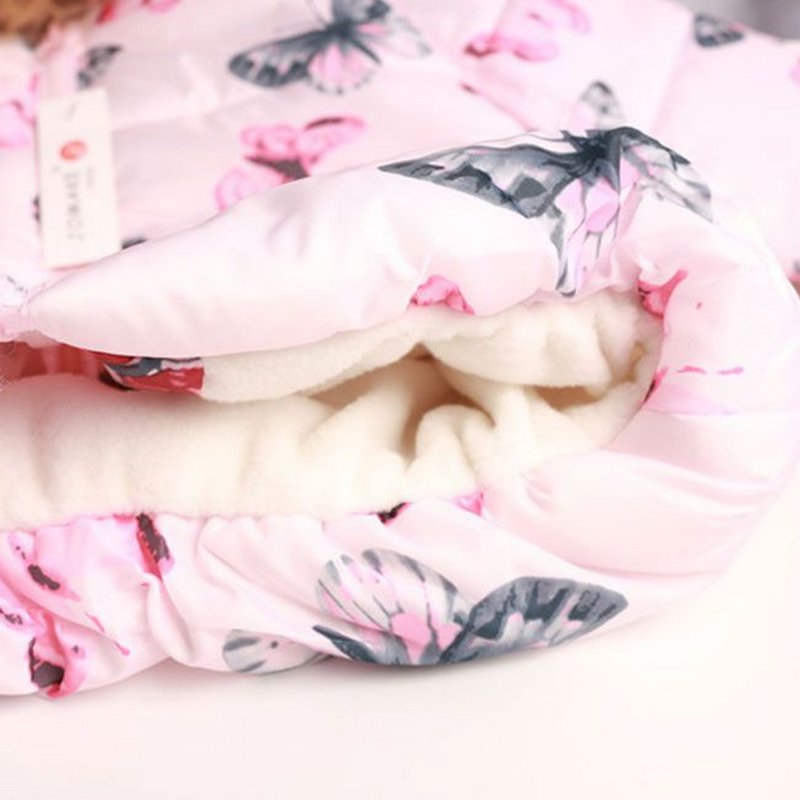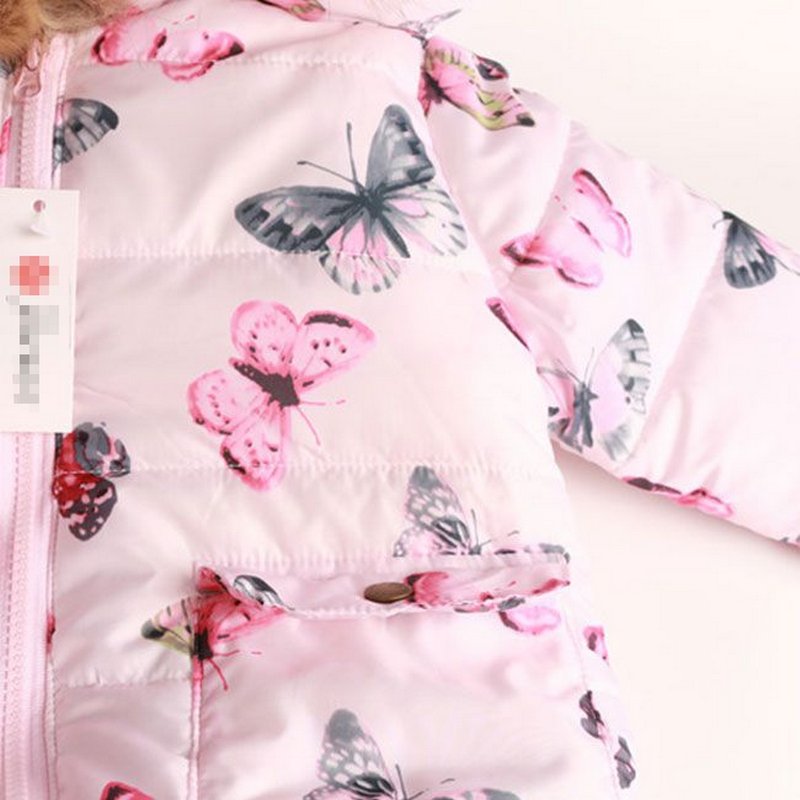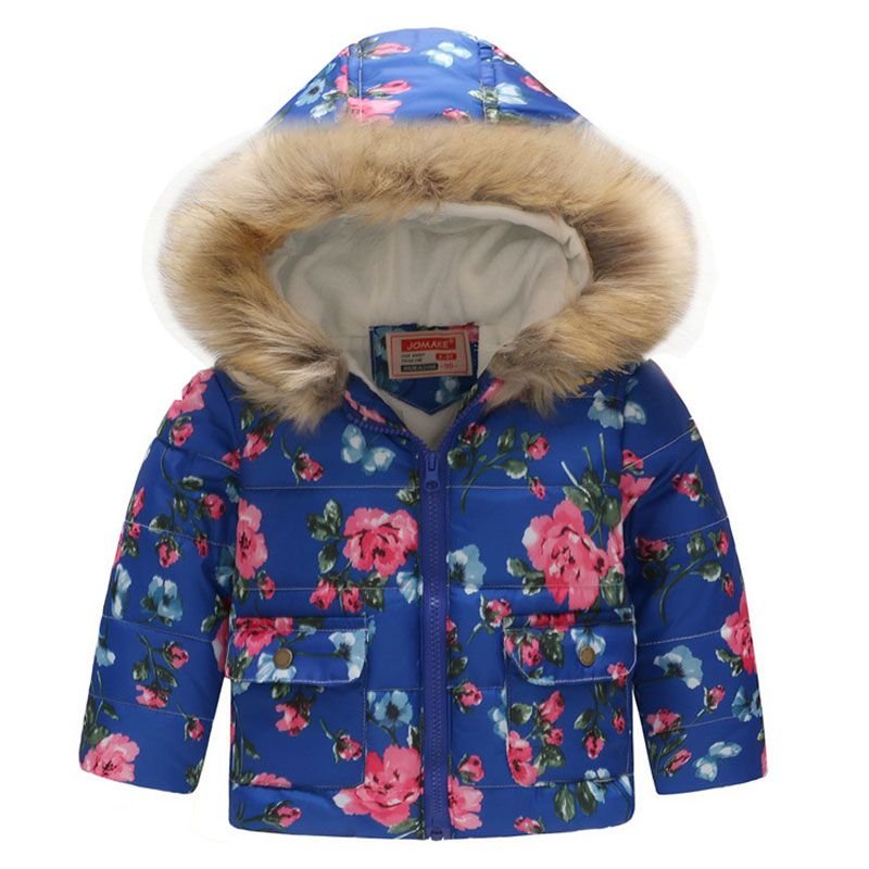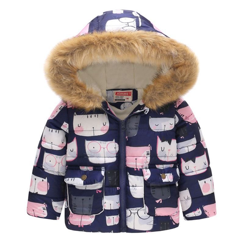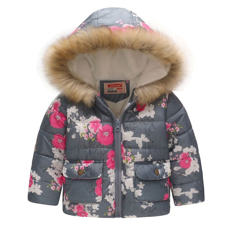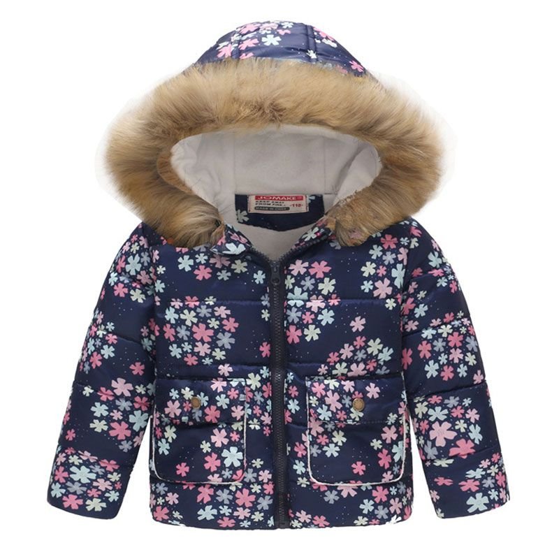 Girl Fashion Print Fur Collar Short Hooded Warm Coat