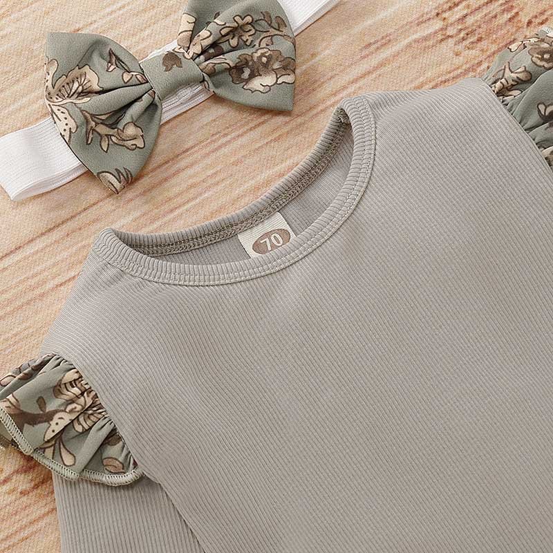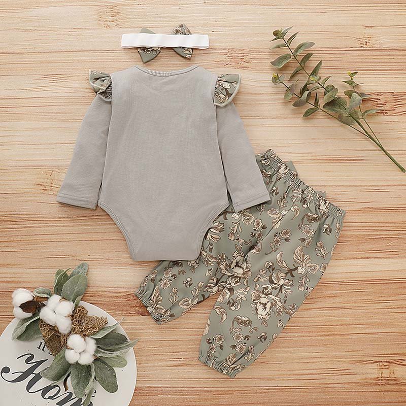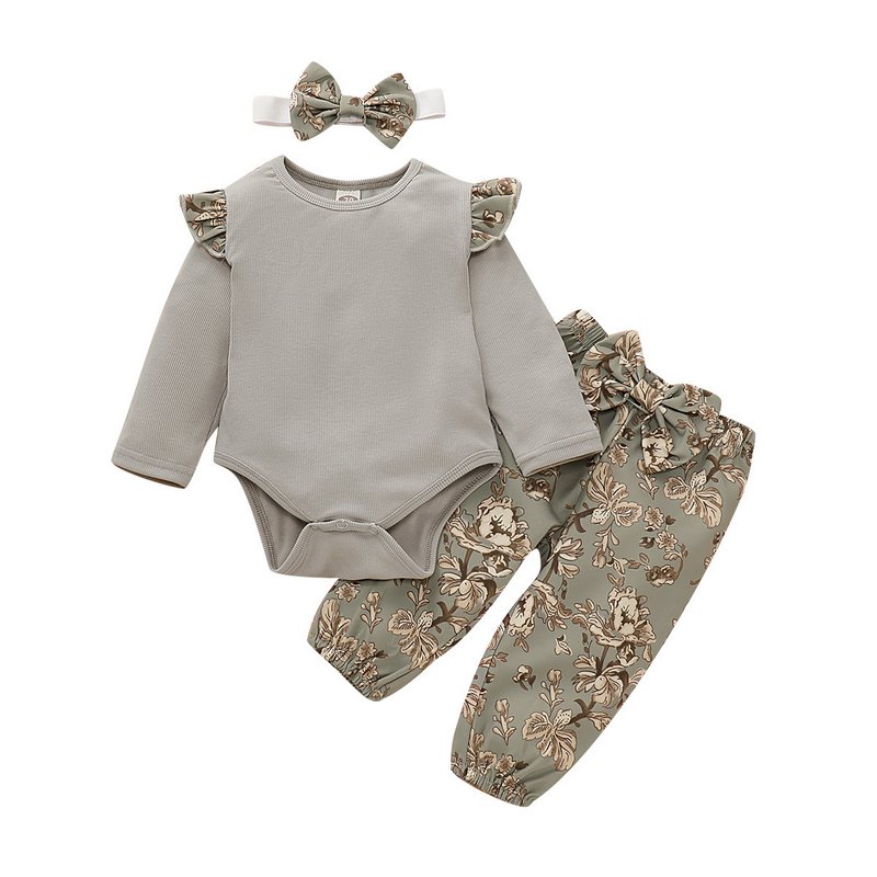 Girl Fashion Round Neck Long Sleeve Romper And Trousers Set