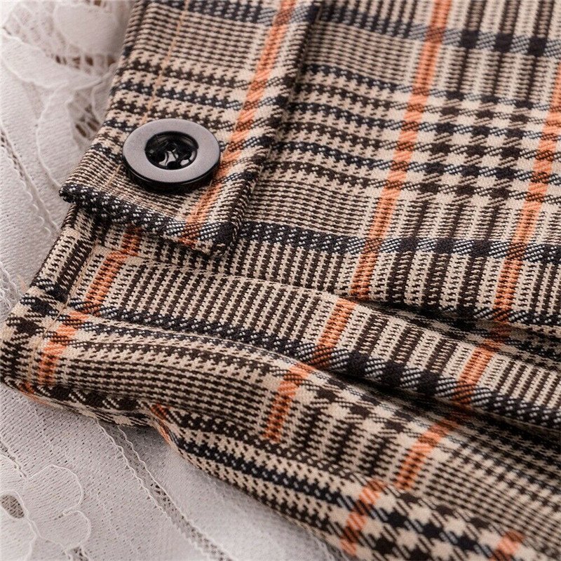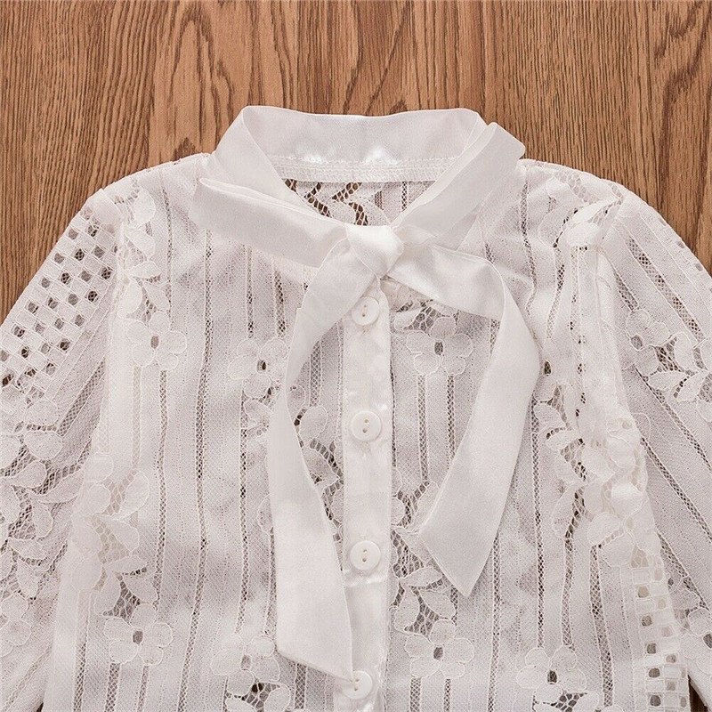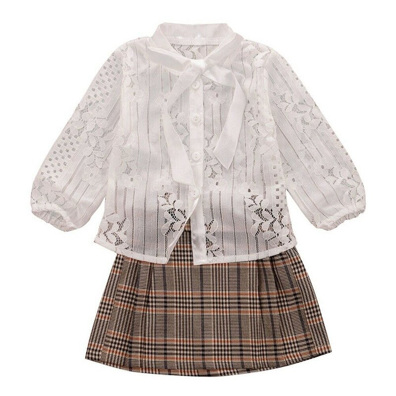 Girl Long Sleeve Lace Top And Plaid Skirt Set