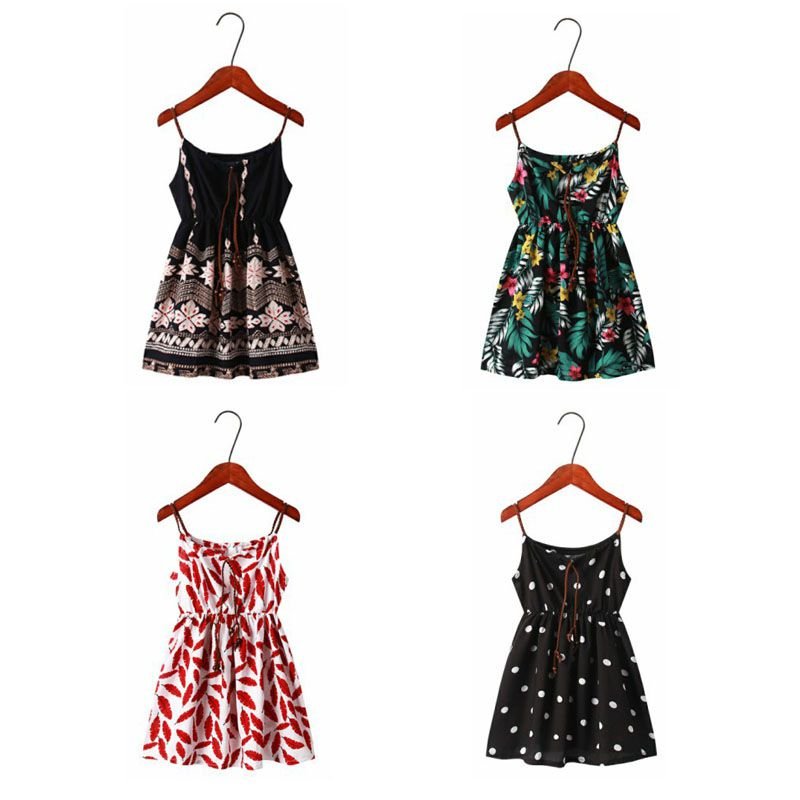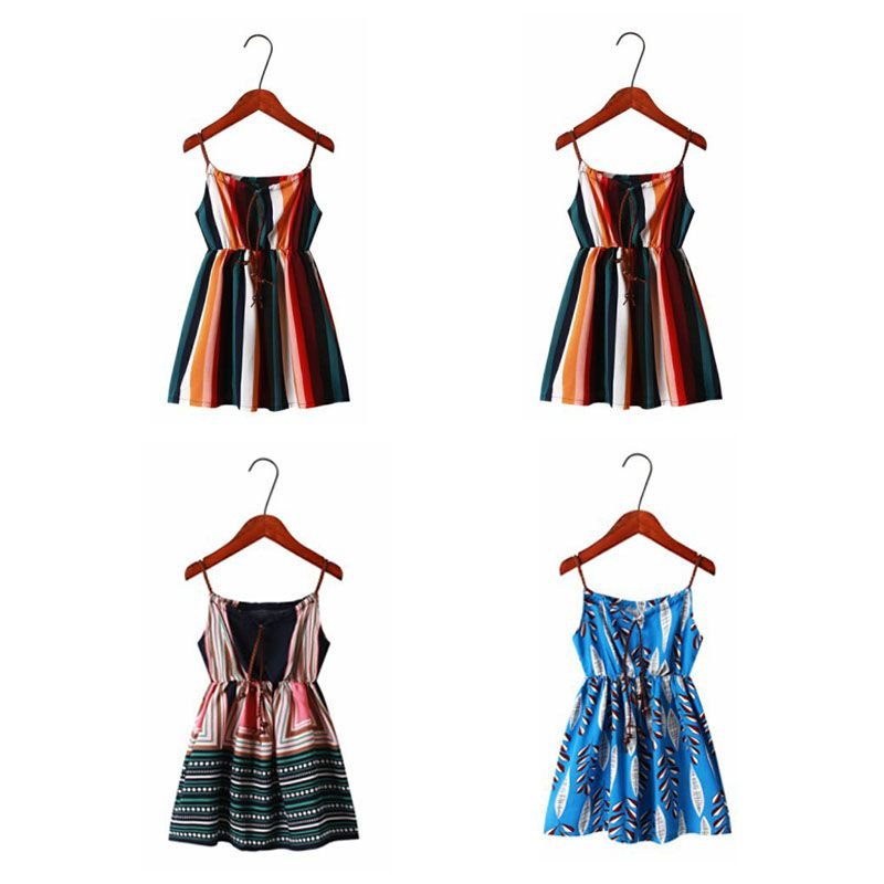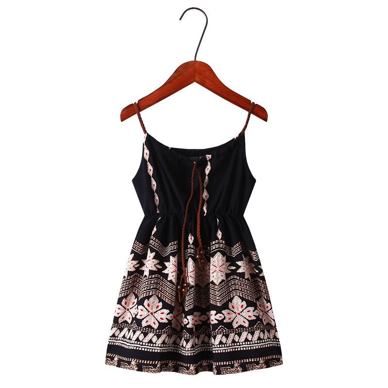 Girl Print Spaghetti Strap Bohemia Dress