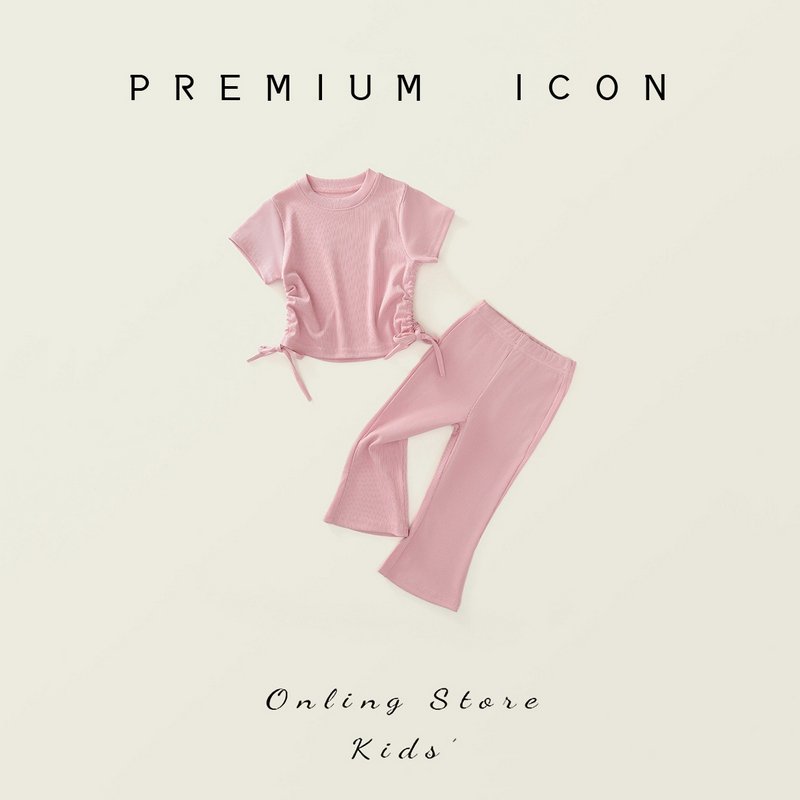 Girl Short-Sleeved Summer Casual Solid Color Elastic T-Shirt Flared Pants Two-Piece Set