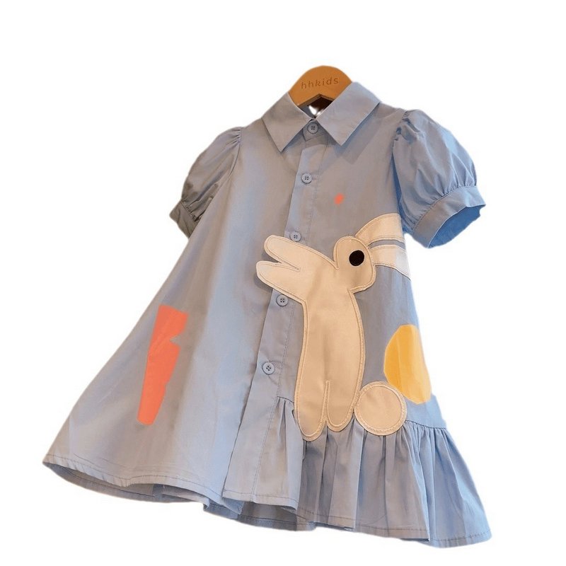Girl Summer Cute Rabbit Short Sleeve Shirt Dress