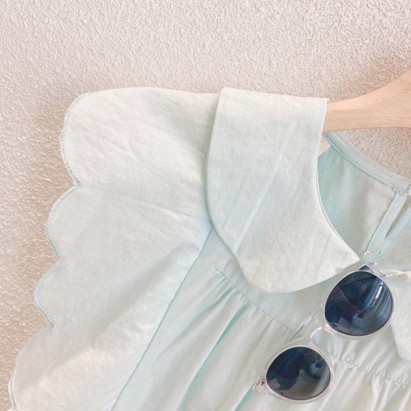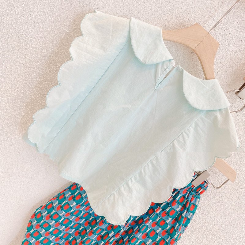 Girls Basic Doll Collar Wavy Sleeveless Blouse And Wide Leg Pants Two-piece Set