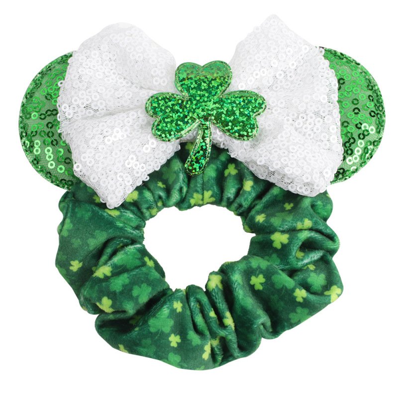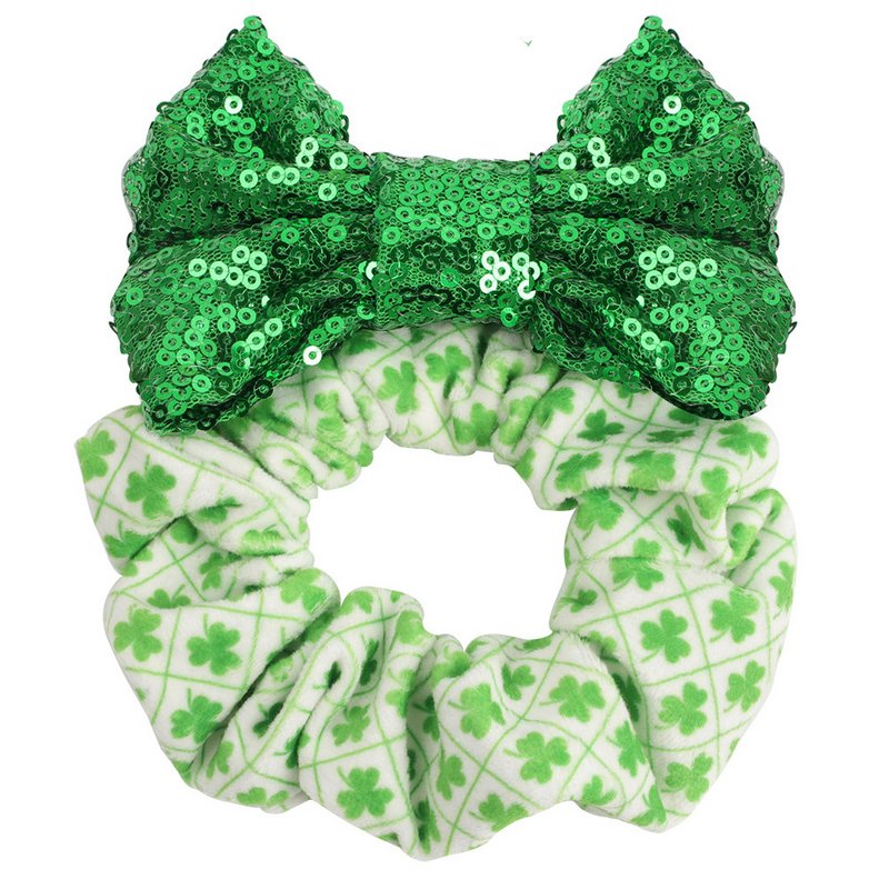 Girls Basic Green St.Parker Green Shamrock Sequin Hair Tie