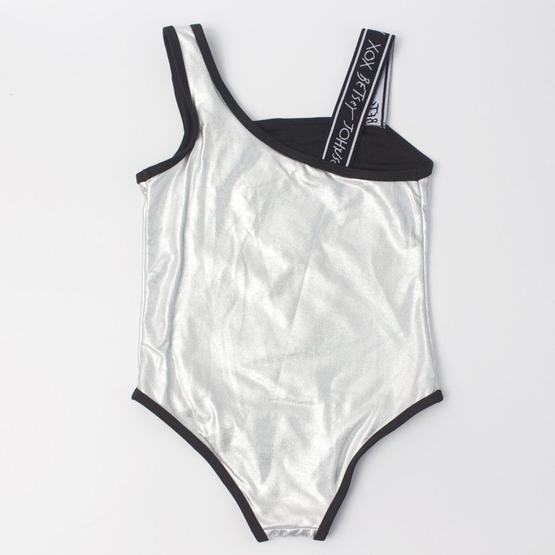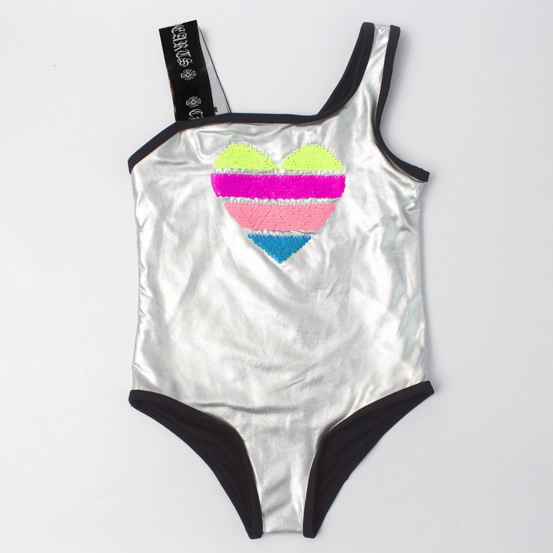 Girls Basic Heart Color Sequin Design One Piece Swimsuit