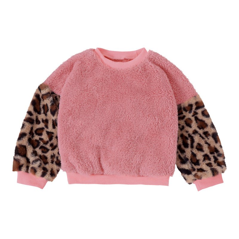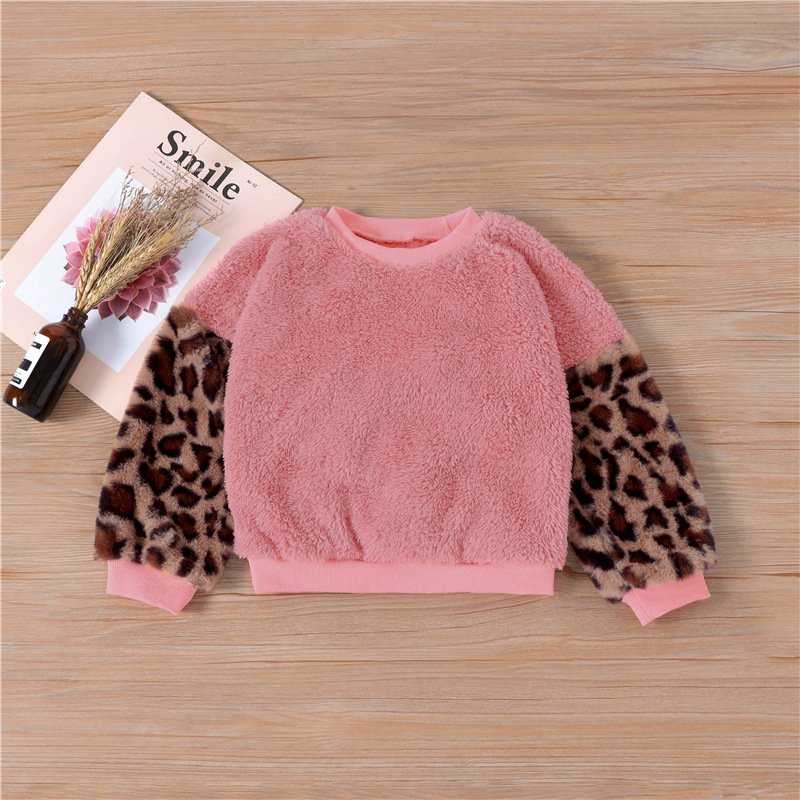 Girls Basic Round Neck Long Sleeve Leopard Plush Sweatshirt