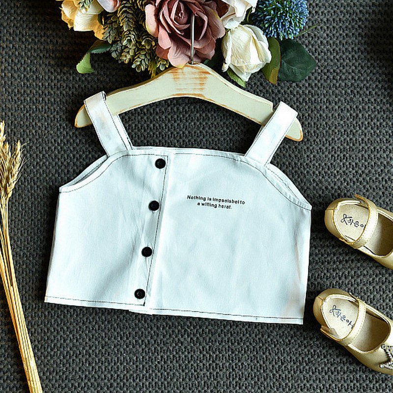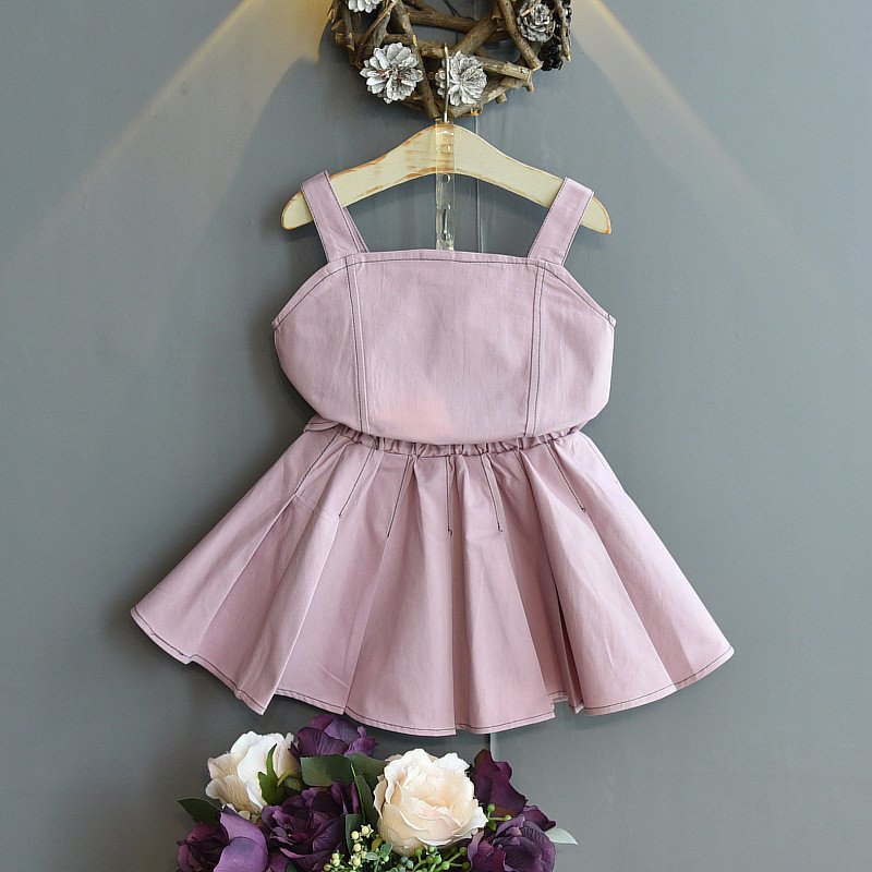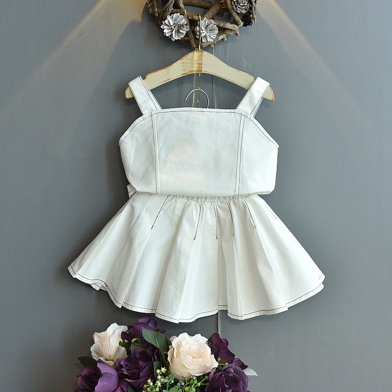 Girls Basic Solid Color Button Design Camisole And Pleated Skirt Set
