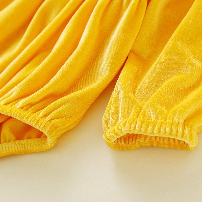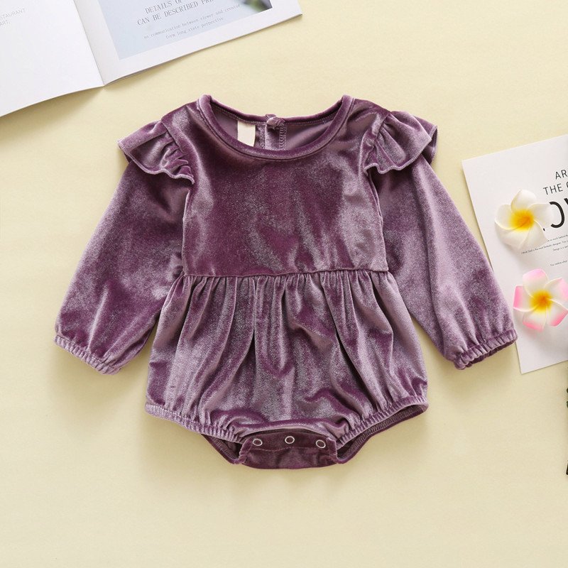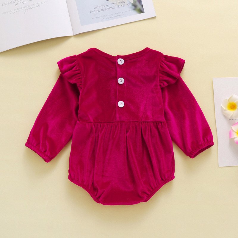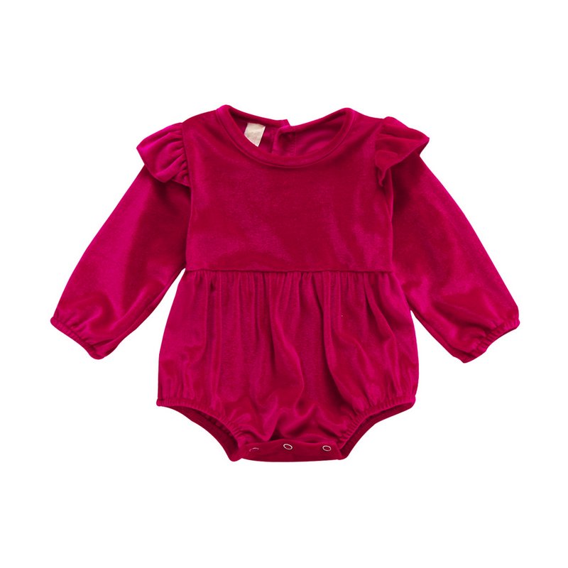 Girls Basic Solid Color Round Neck Long Sleeve Velvet Romper