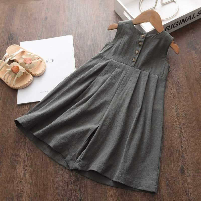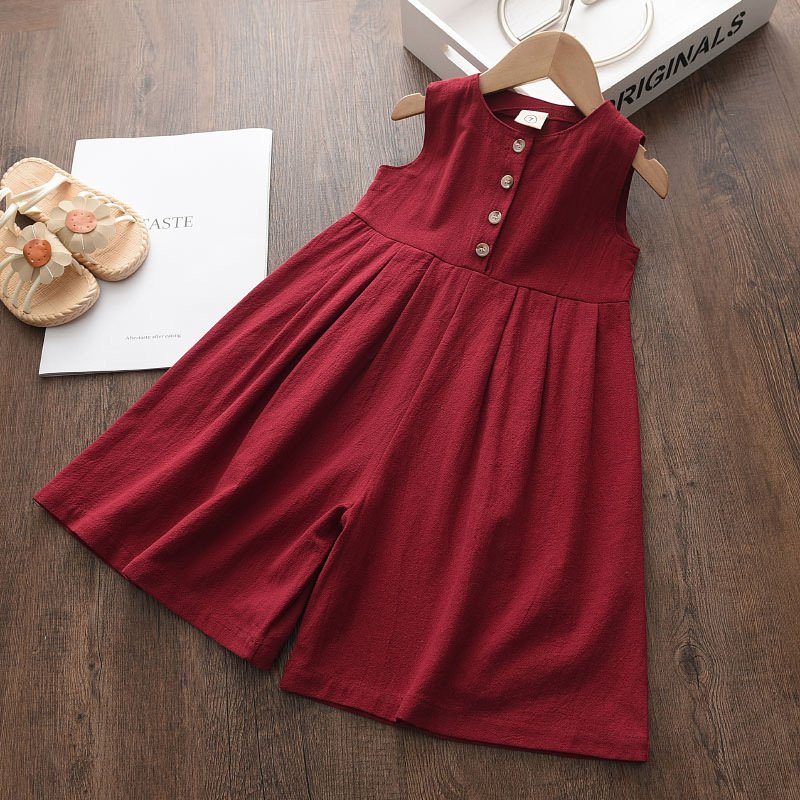Girls Basic Solid Color Sleeveless Jumpsuit