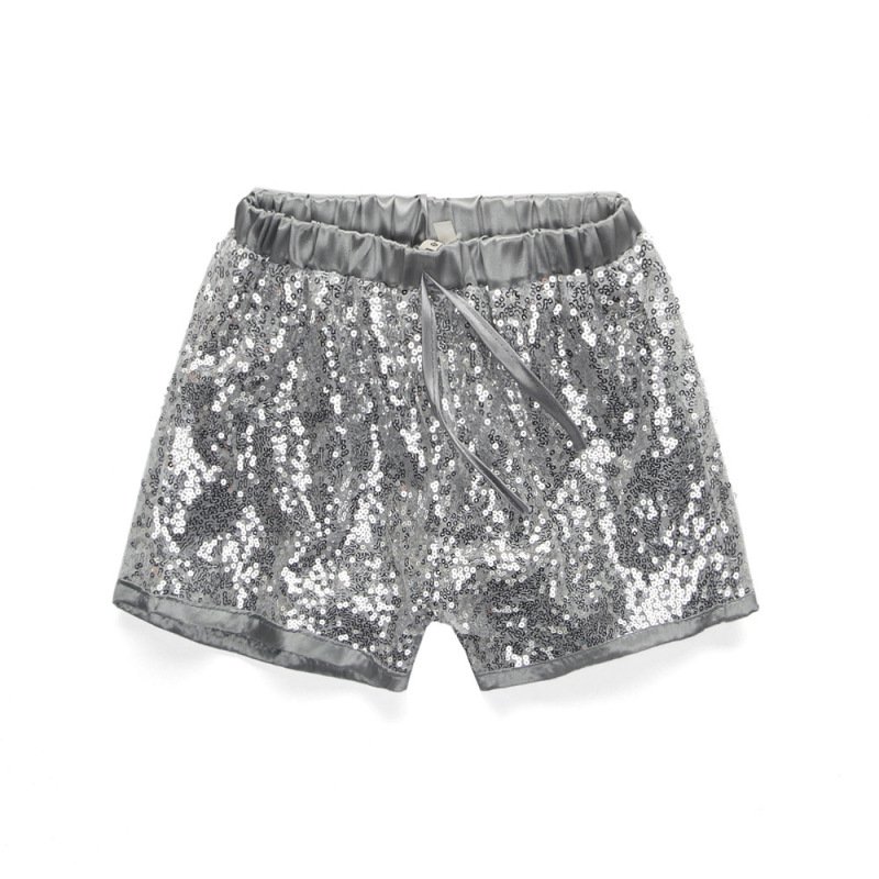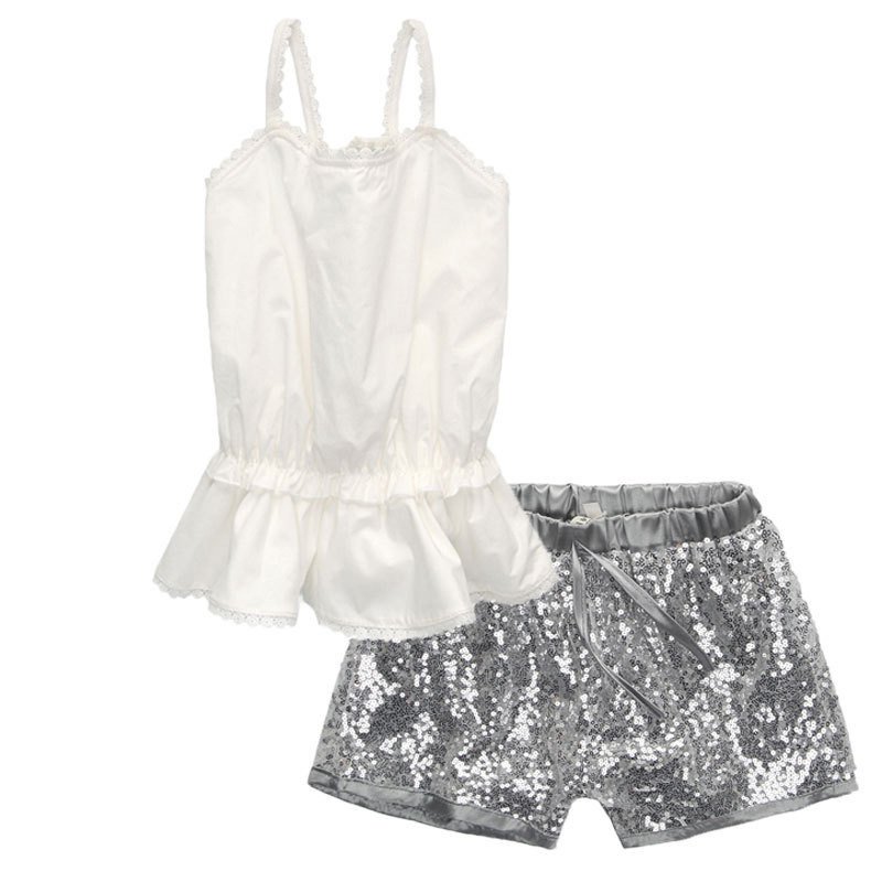 Girls Basic Solid Color Sleeveless Ruffled Backless Top And Sequin Shorts Set
