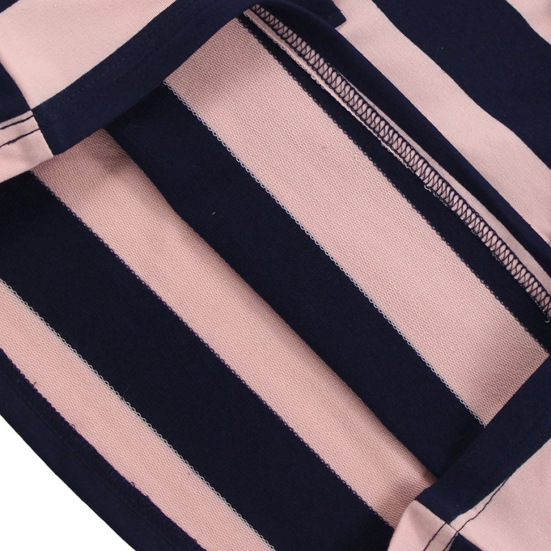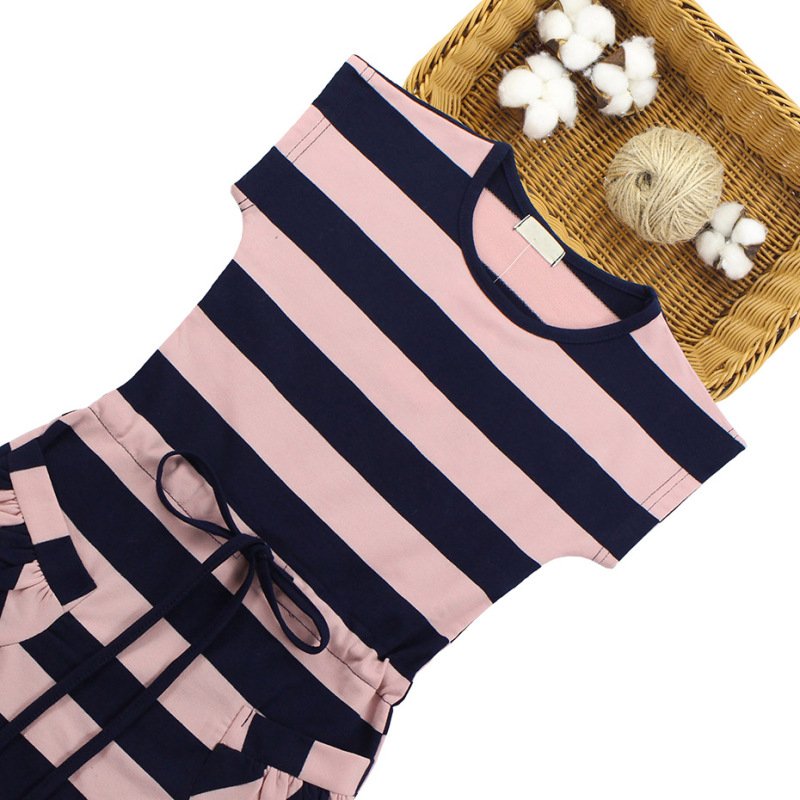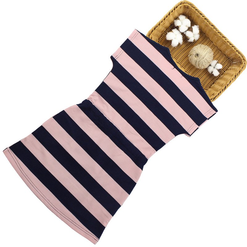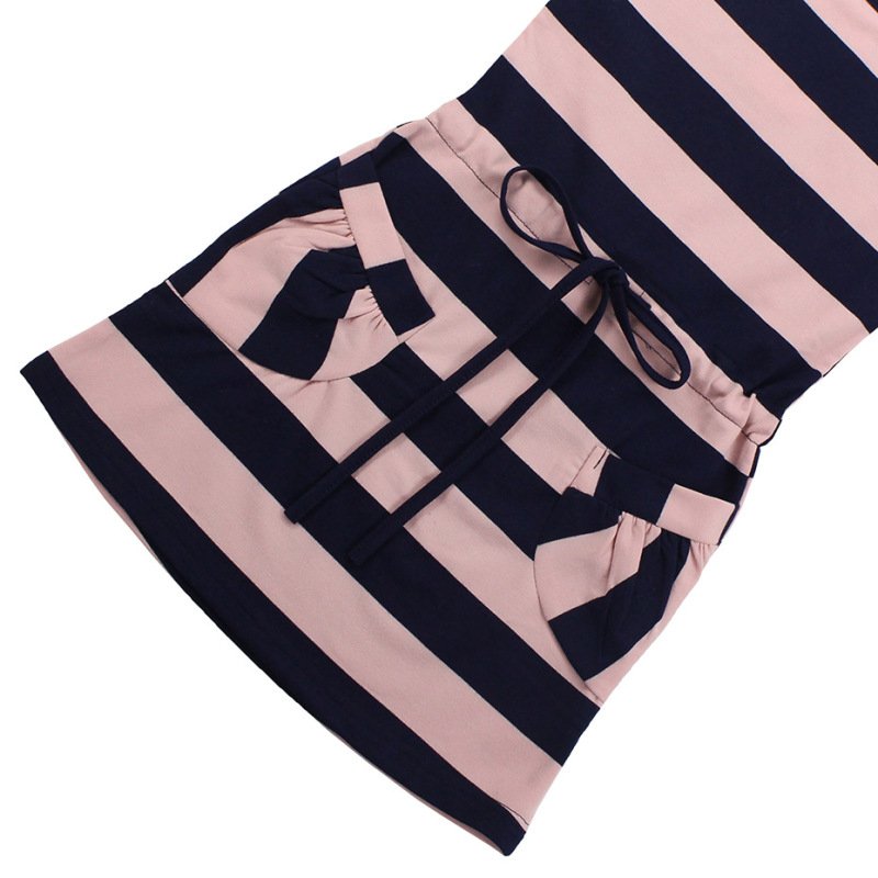 Girls Basic Striped Round Neck Short Sleeve Dress