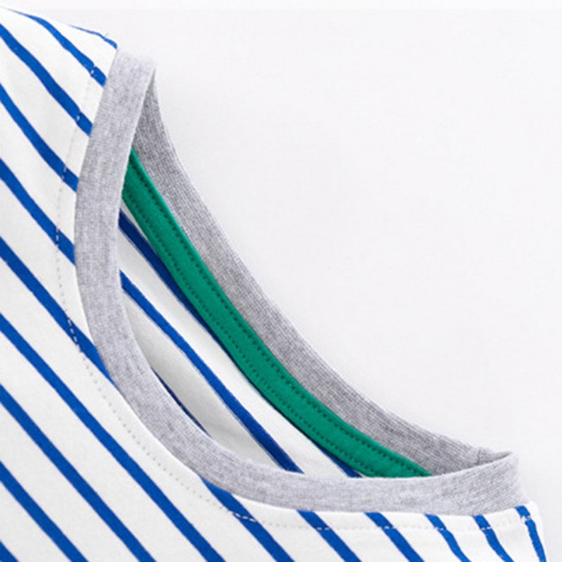 Girls Blue And White Striped Printed Long-Sleeved Top And Trousers Set