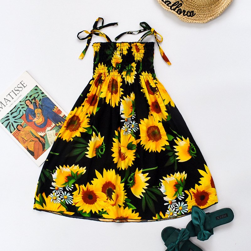 Girls Bohemia Casual Floral All Over Print Slip Dress