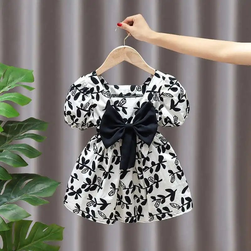 Girls Bowknot Decor Leaf Pattern Wear Dress On Both Sides