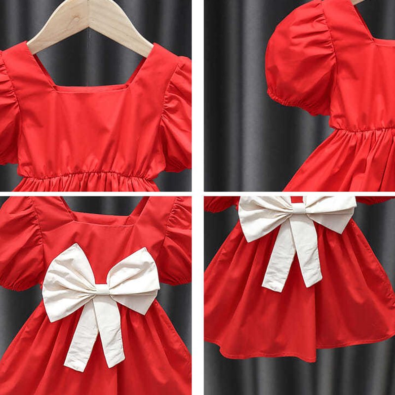 Girls Bowknot Decor Leaf Pattern Wear Dress On Both Sides