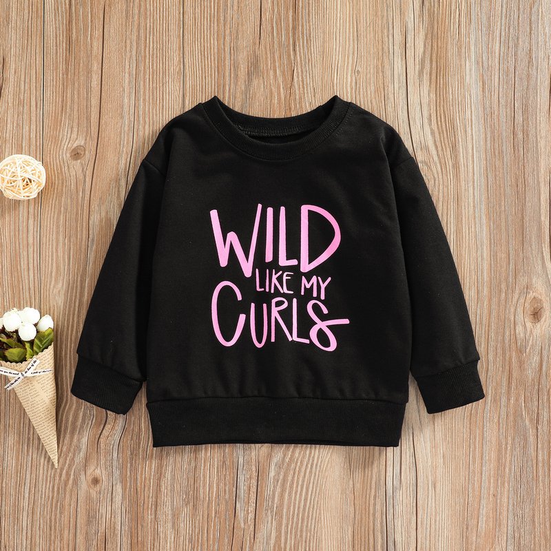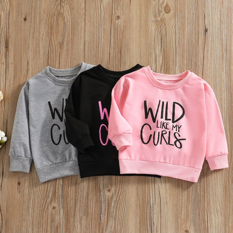 Girls Casual Round Neck Long Sleeve Letter Pattern Sweatshirt