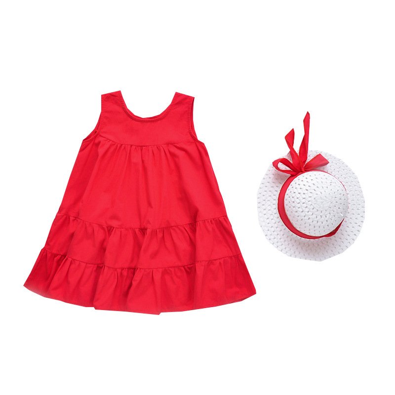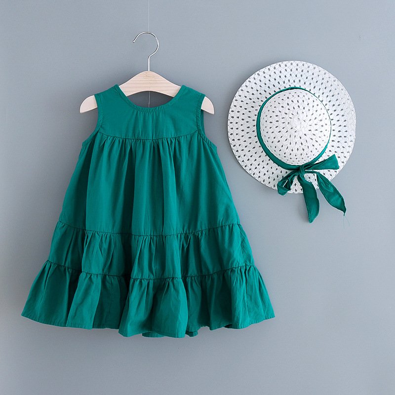 Girls Casual Round Neck Sleeveless Dress With Headband