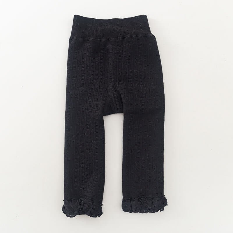 Girls Casual Solid Color Lace Fleece-lined Leggings