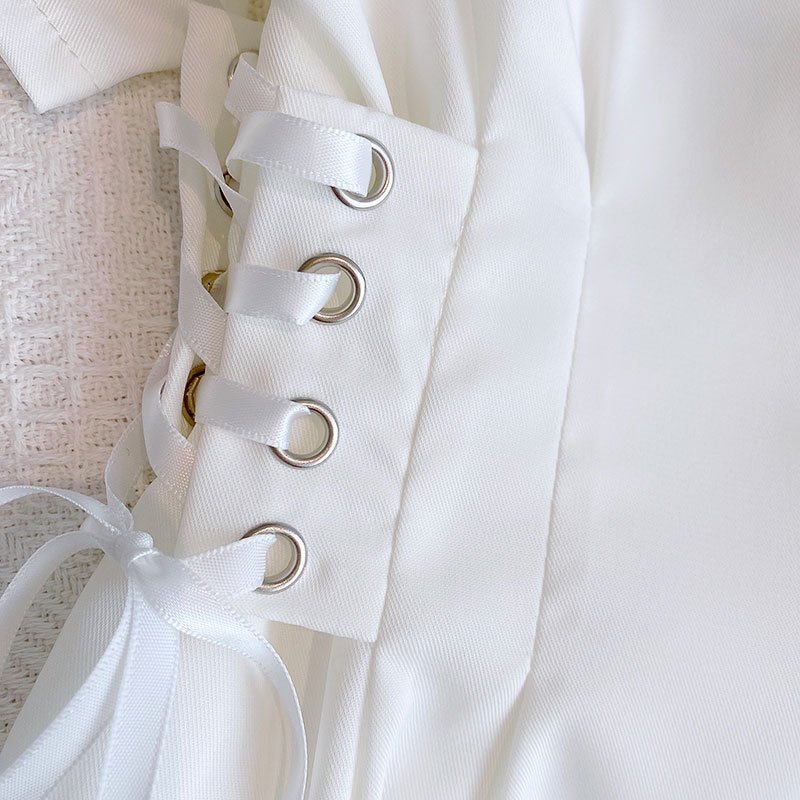 Girls Casual Solid Color Lapel Puff Sleeve Single-breasted Suit Dress