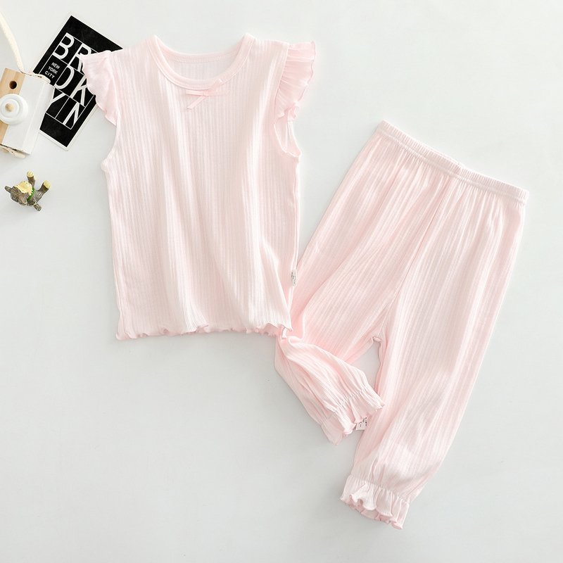 Girls Casual Solid Color Round Neck Short-sleeved Top And Pants Set