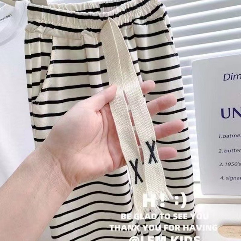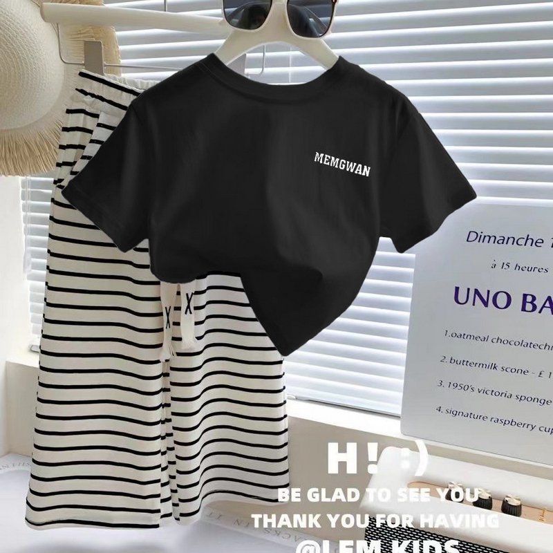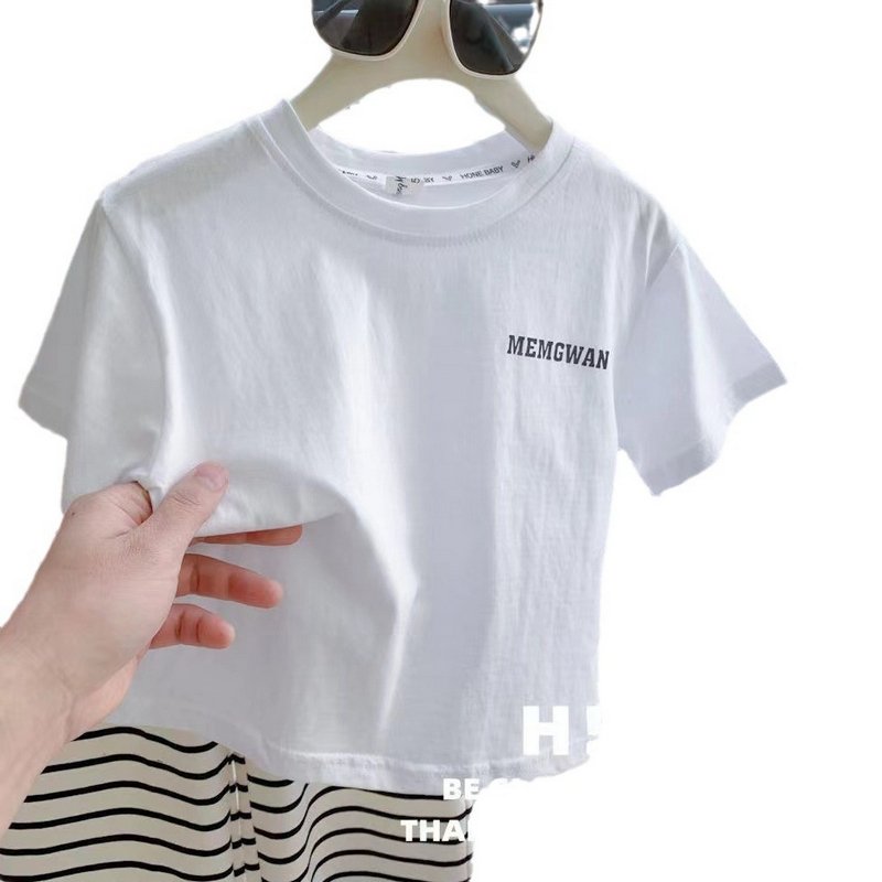 Girls Casual Summer Short Sleeve White Tee Striped Pants Set