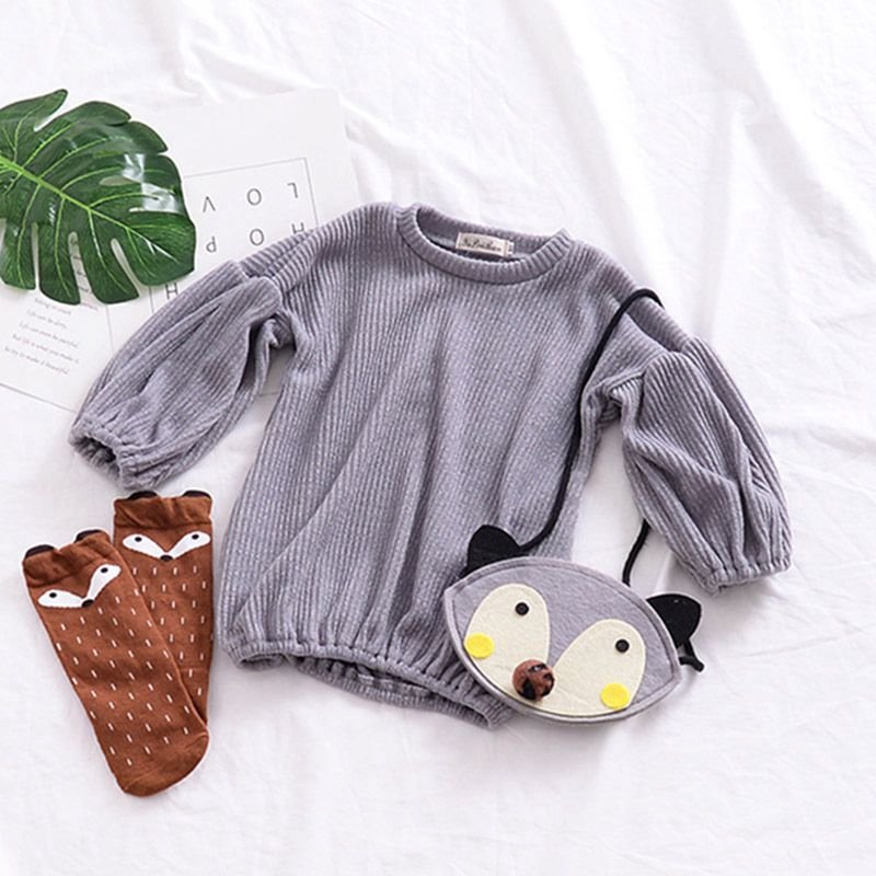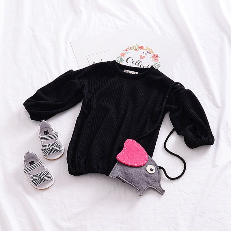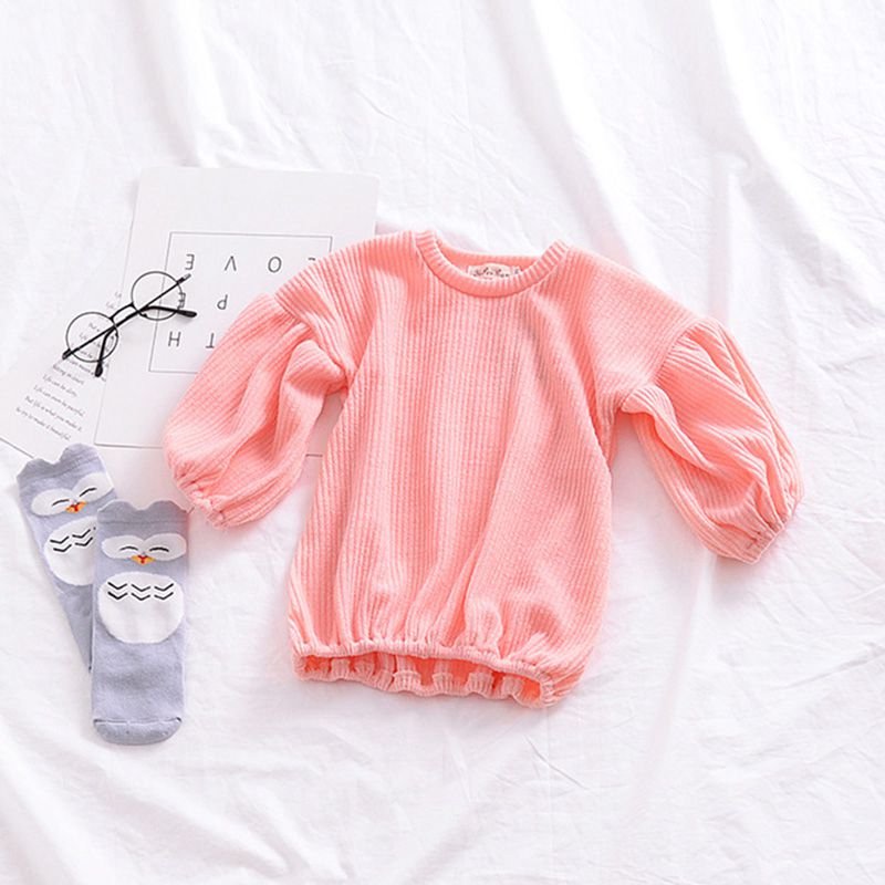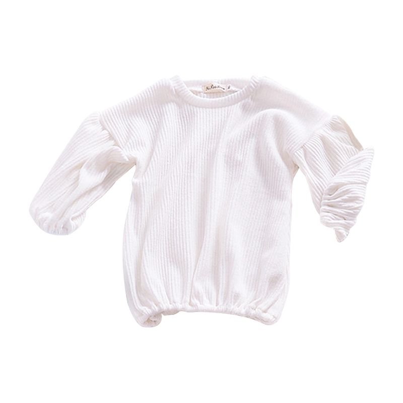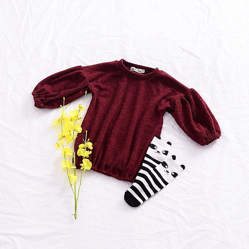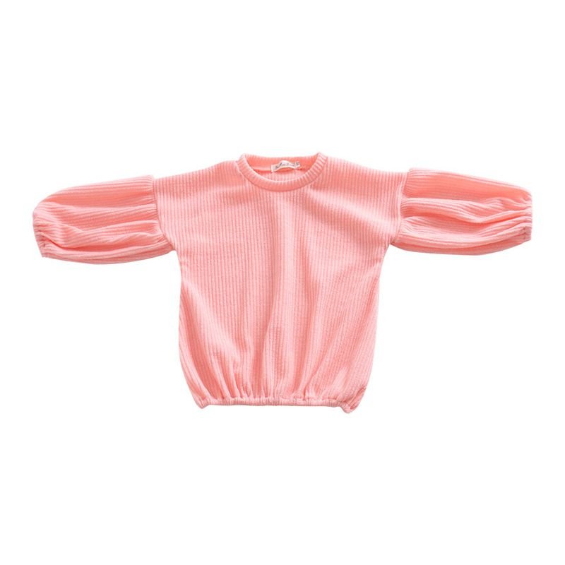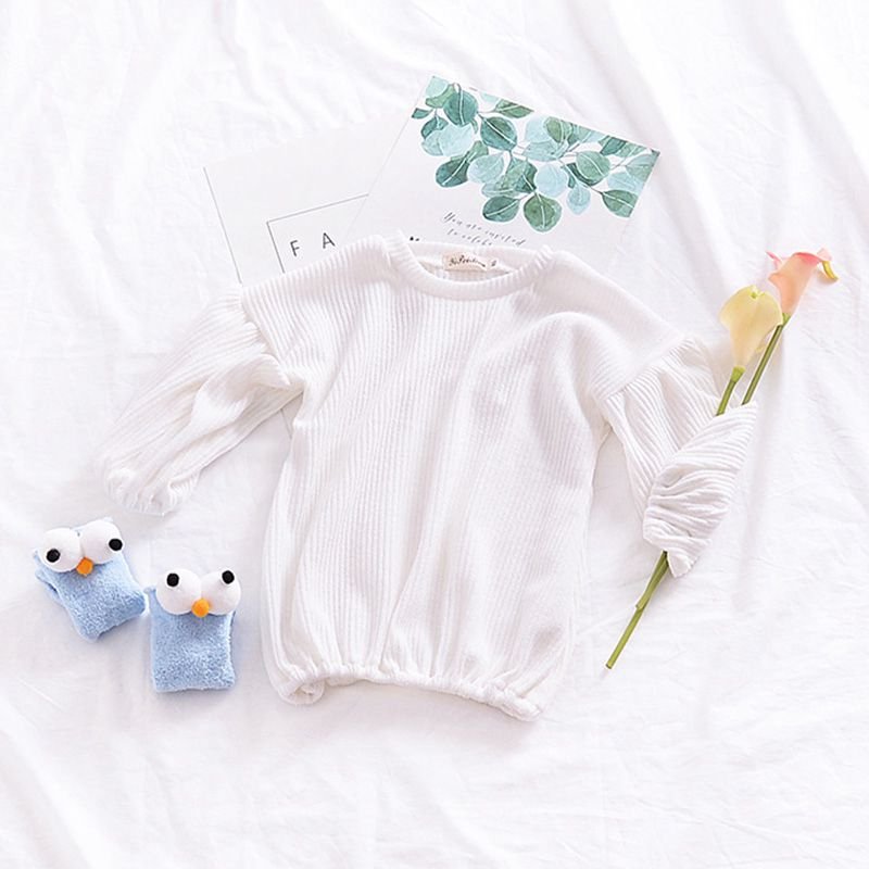 Girls Cotton Solid Color Puff Sleeves Simple Style Basic Tops