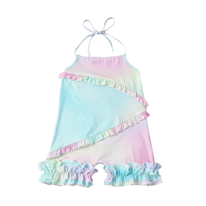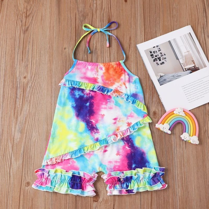 Girls Creative Tie-dyed Stringy Selvedge Design Sling Romper