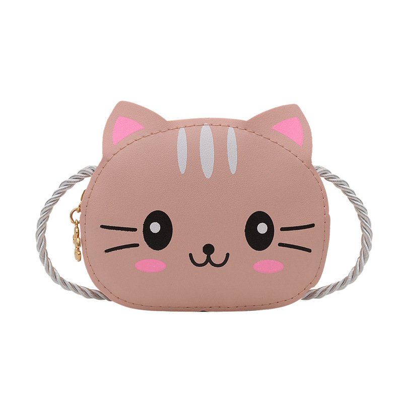 Girls Cute Cartoon Cat Mini Zipper Crossbody Bag