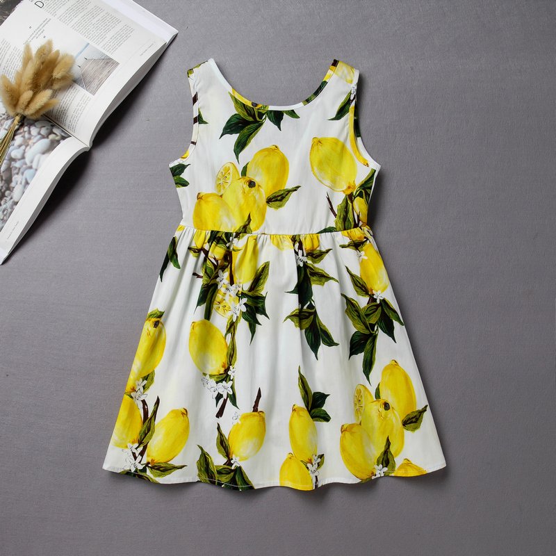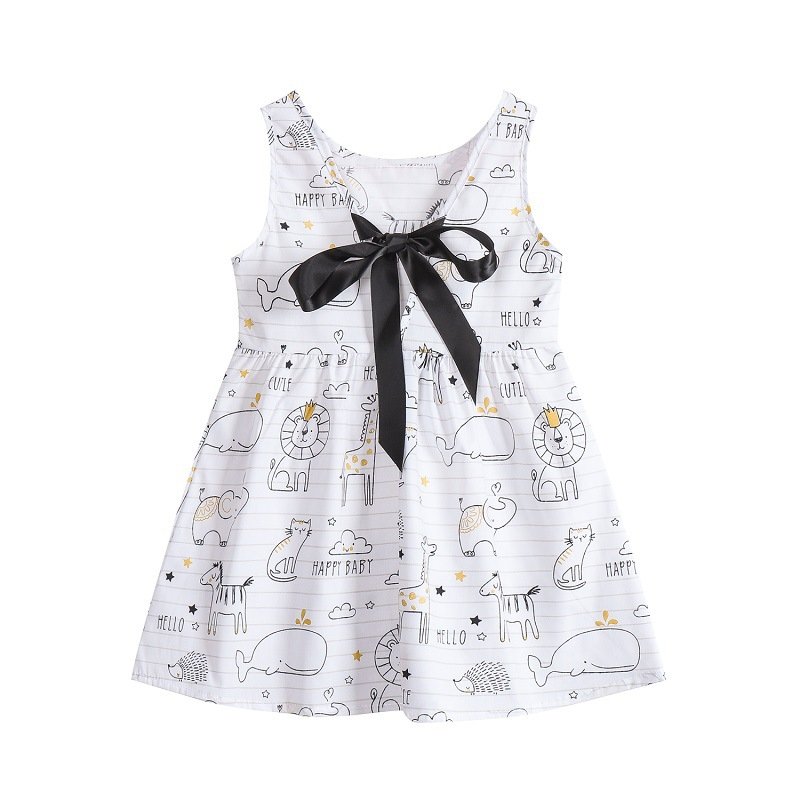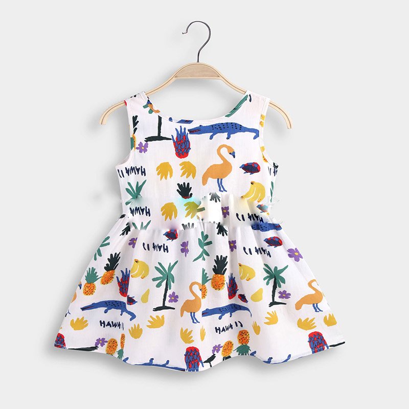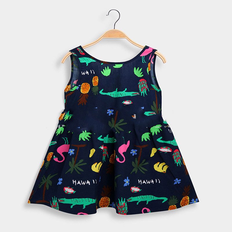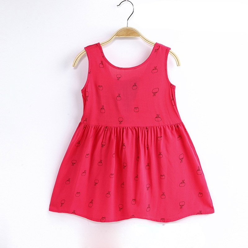 Girls Cute Cartoon Pattern All Over Print Sleeveless Dress