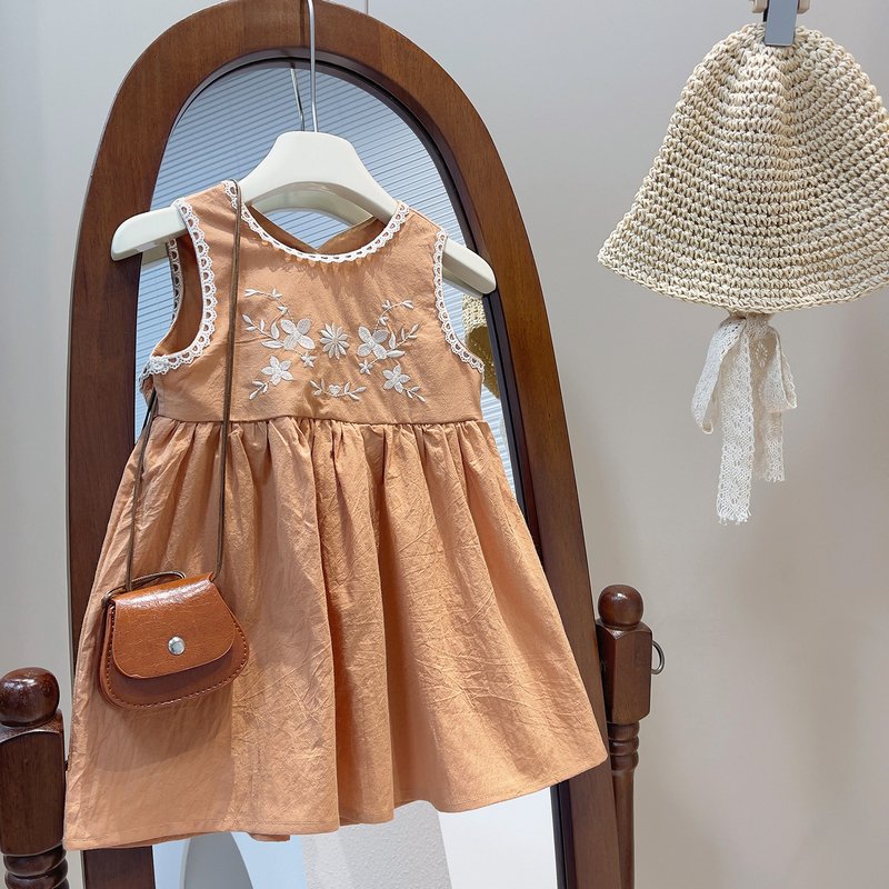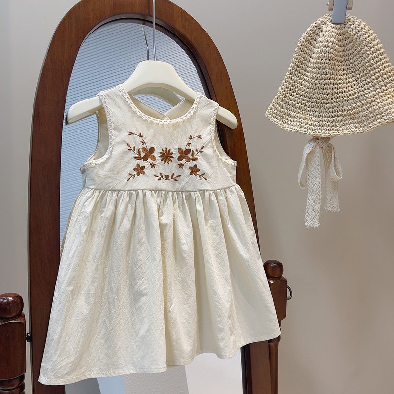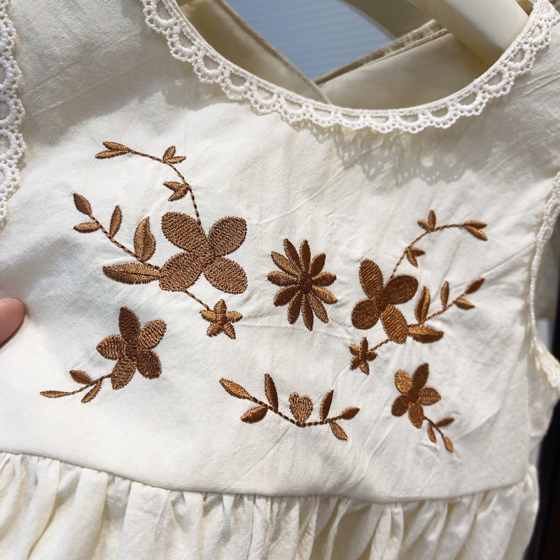 Girls Cute Dress Embroider Lace Edge Tank Dress