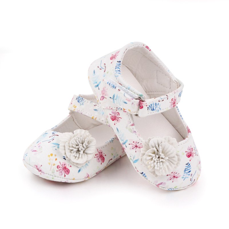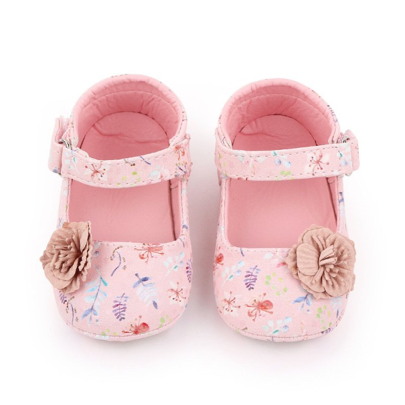 Girls Cute Flower Decor Plant Pattern Soft Bottom Velcro First Walkers