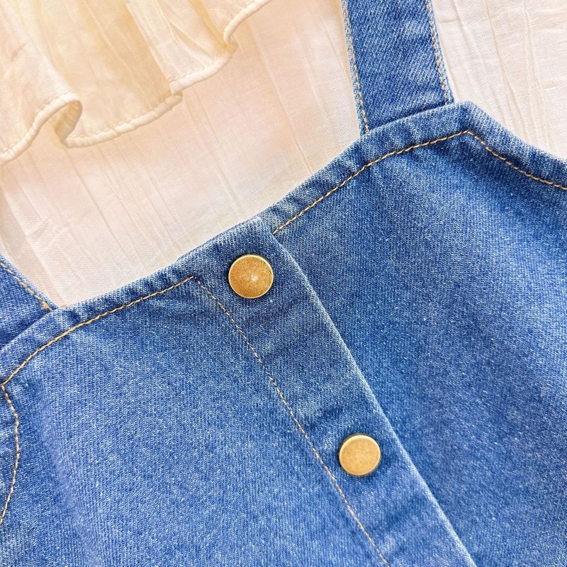 Girls Cute Lotus Collar Shirt And Jeans Three-Piece Set