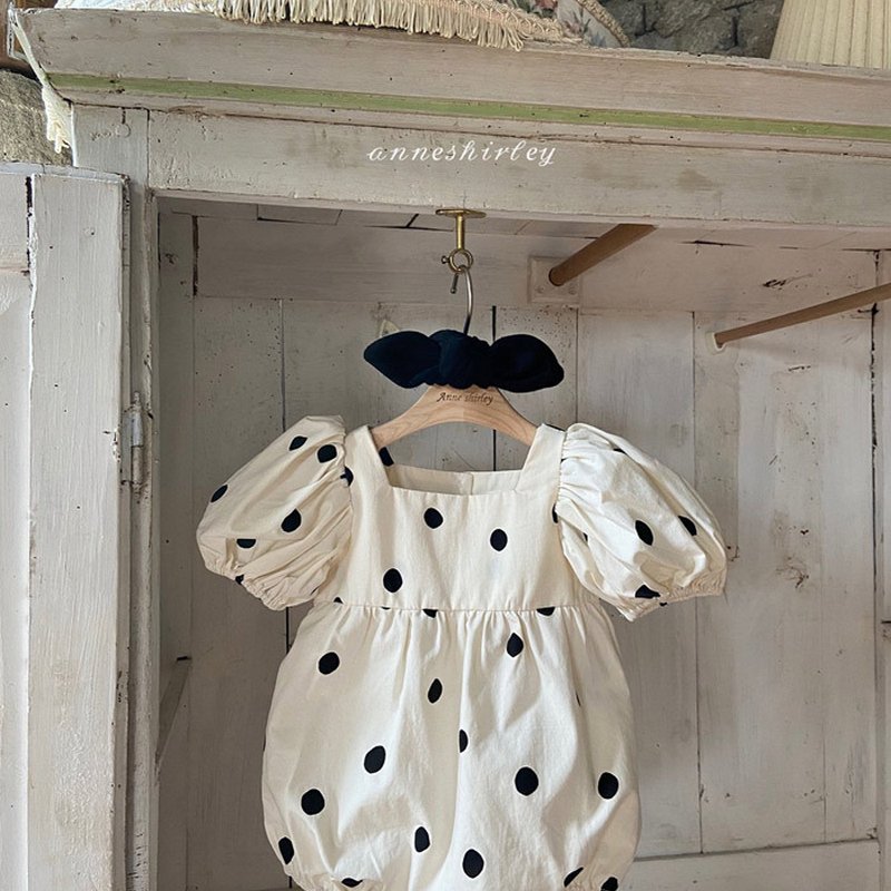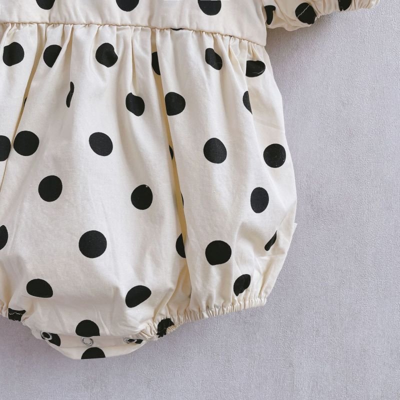 Girls Cute Polka Dot All Over Print Puff Sleeve Romper With Headband