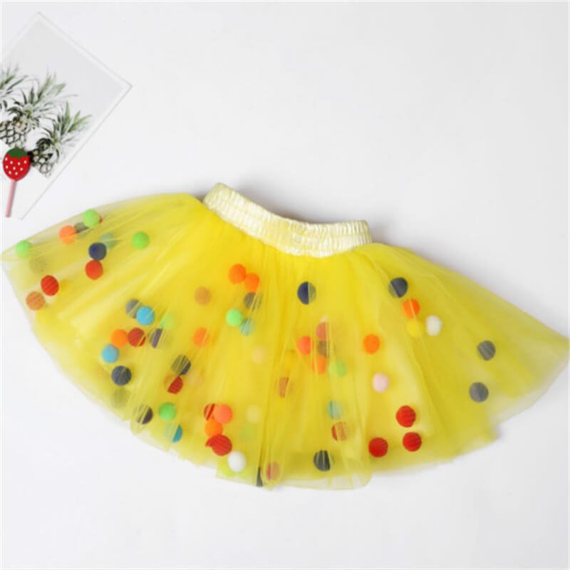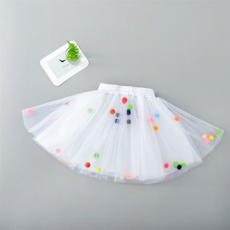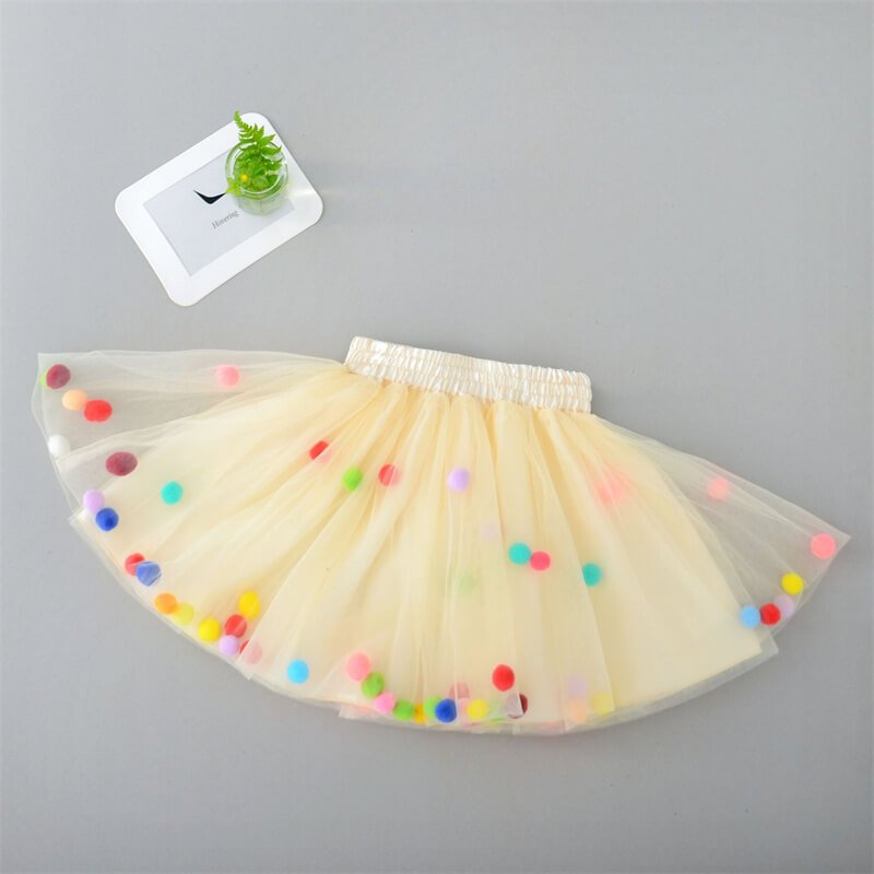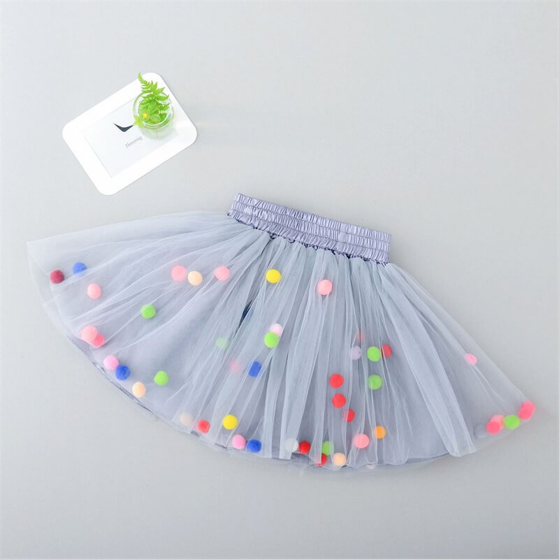 Girls Cute Pompon Decoration Mesh Fluffy Skirt