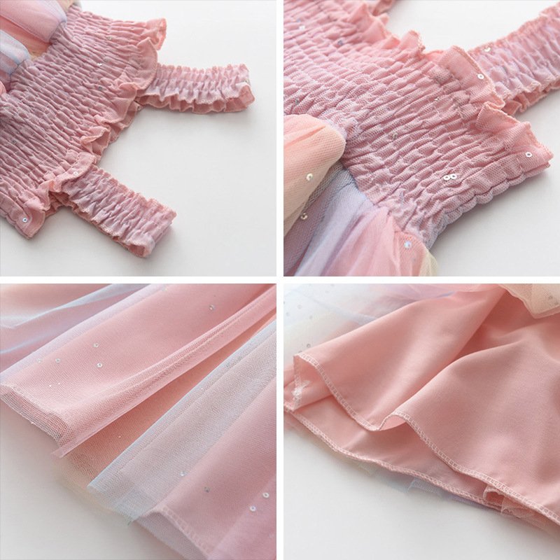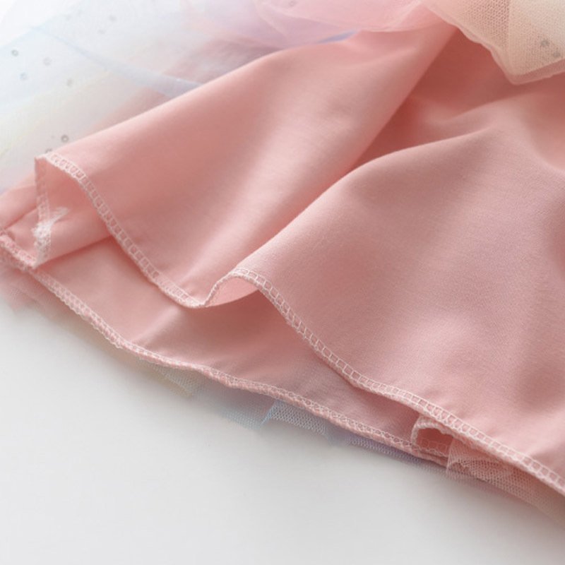 Girls Cute Rainbow Crumpled Mesh Princess Dress