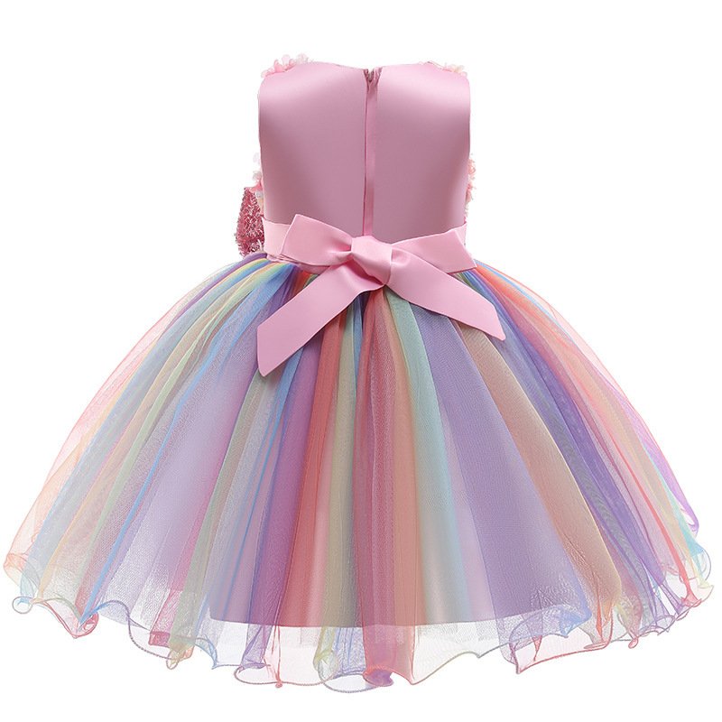 Girls Cute Sleeveless Flower Big Bow Mesh Evening Party Dress