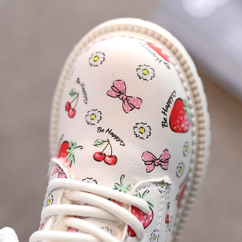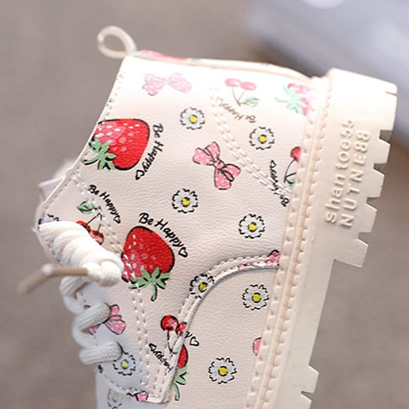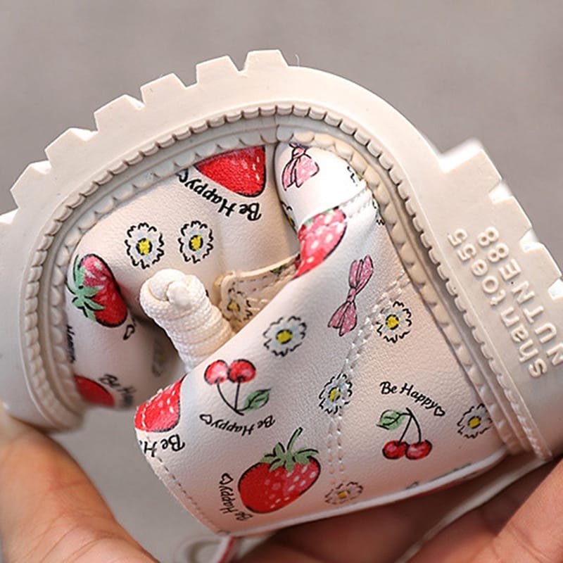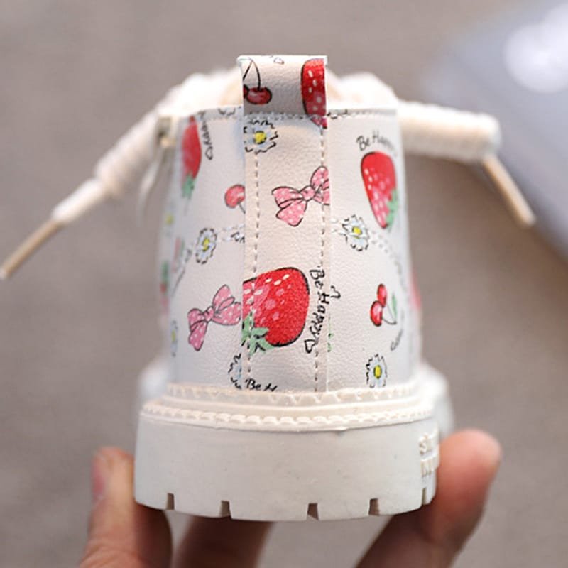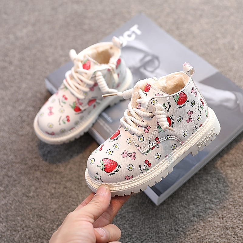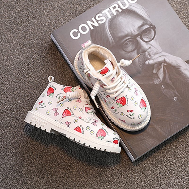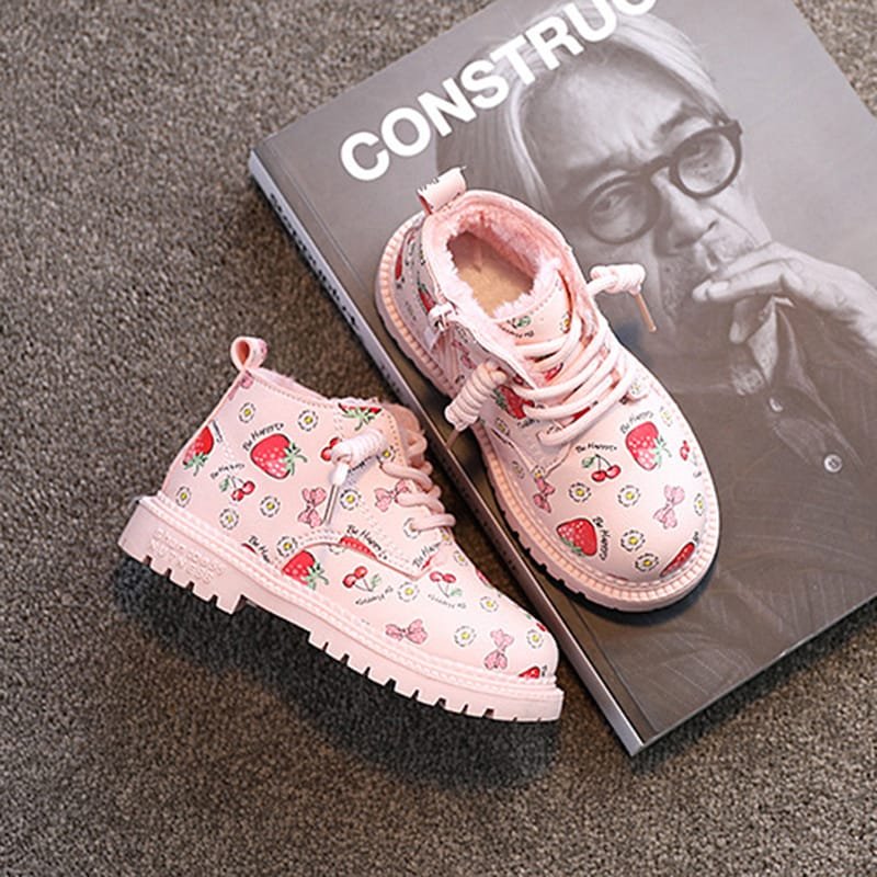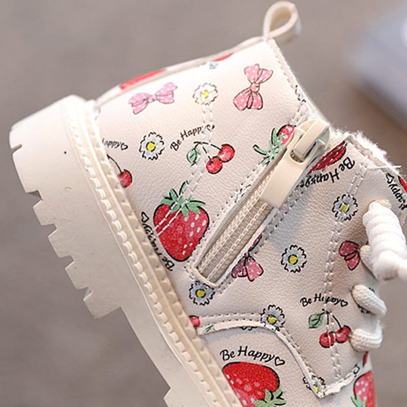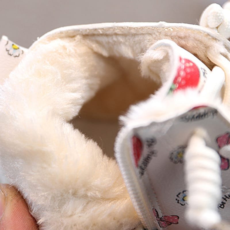 Girls Cute Strawberry Pattern Tie Rope Design Plush Boots