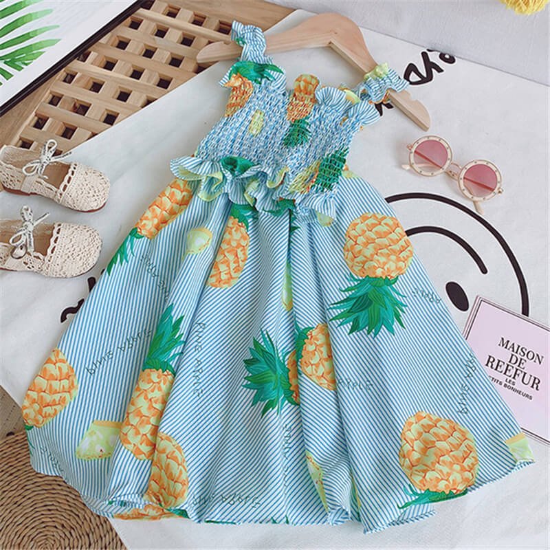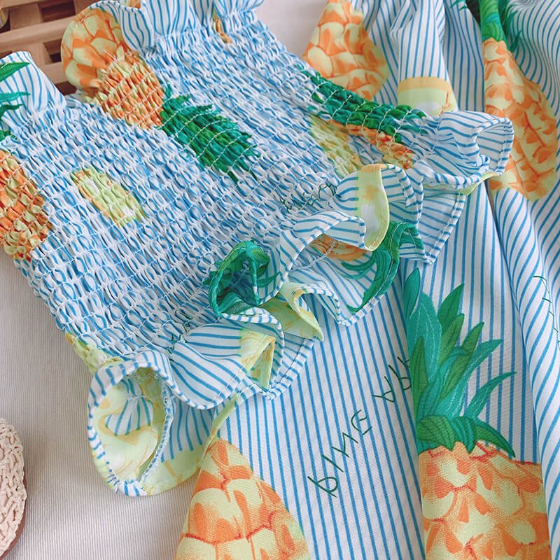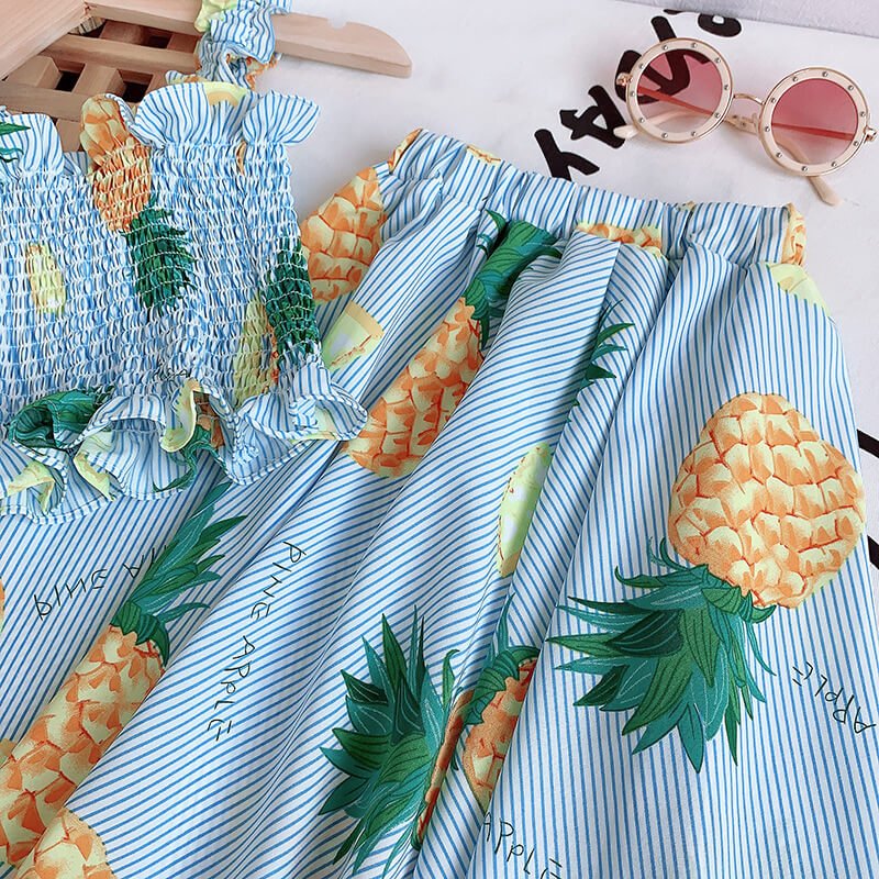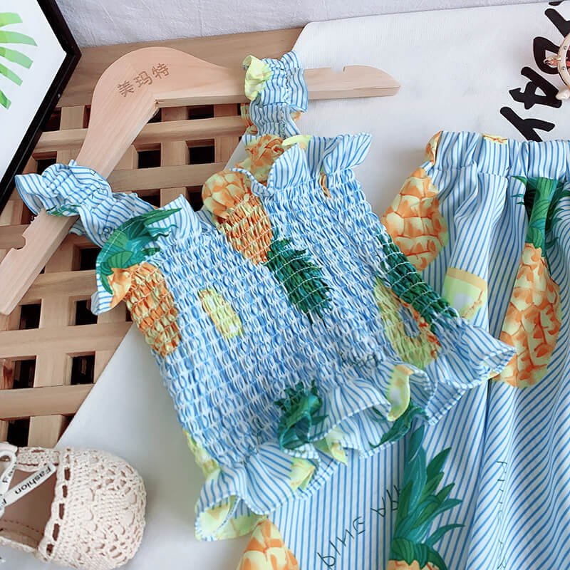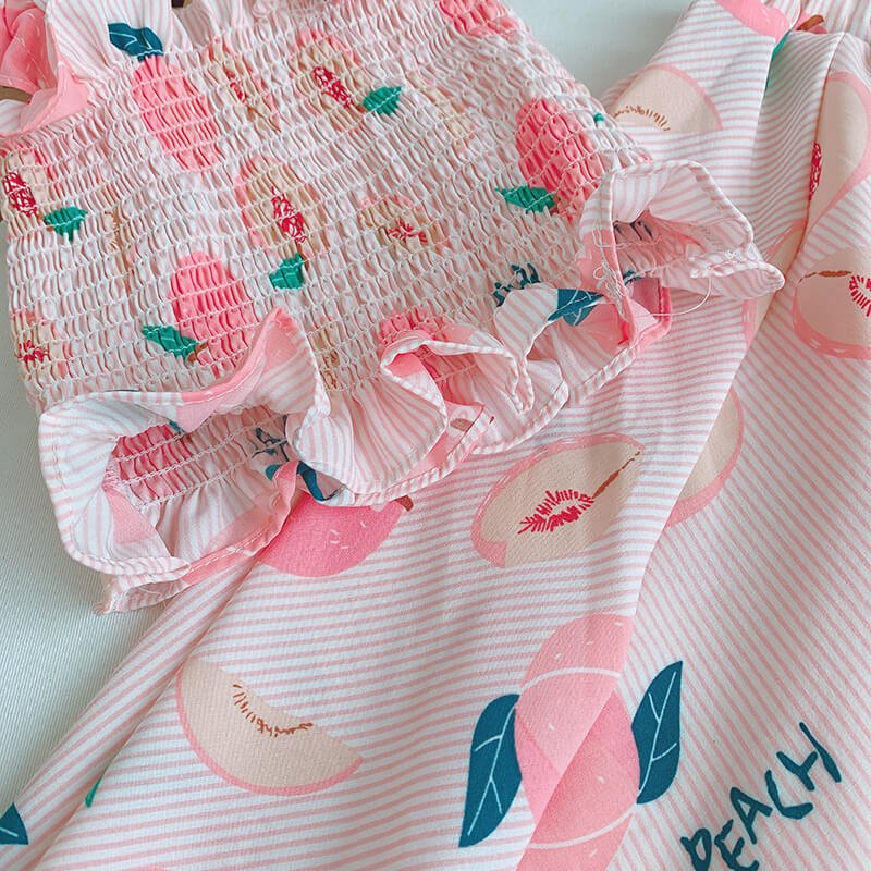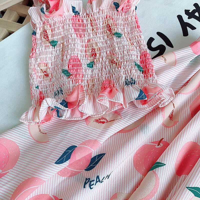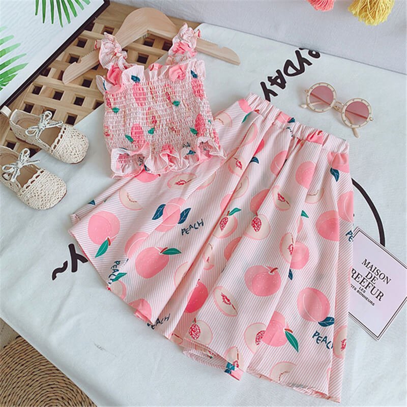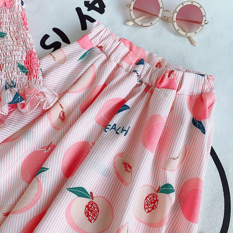 Girls Cute Stringy Selvedge Elastic Camisole And Fruit Design Skirt