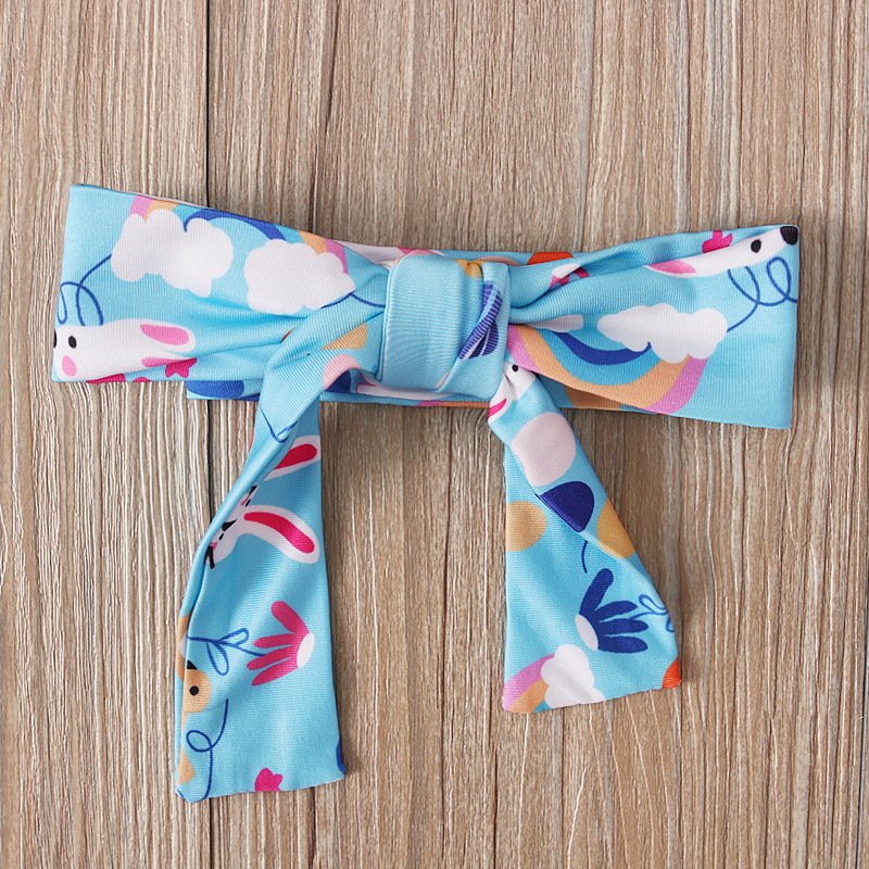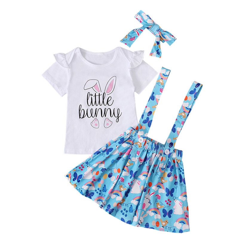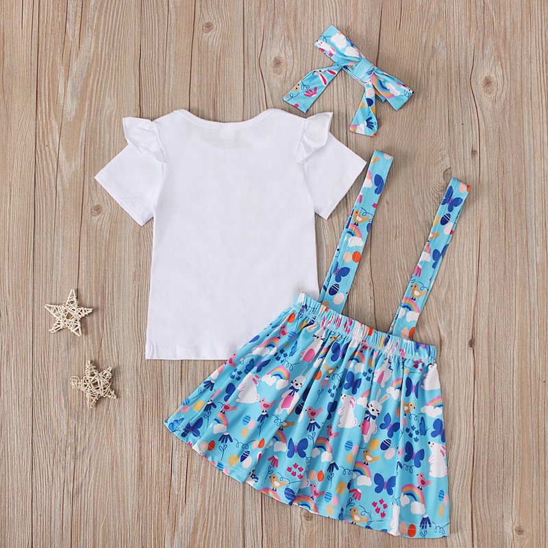 Girls Easter Cartoon Rabbit Letter Pattern Round Neck Short-sleeved T-Shirt And Suspender Skirt With Headband Set