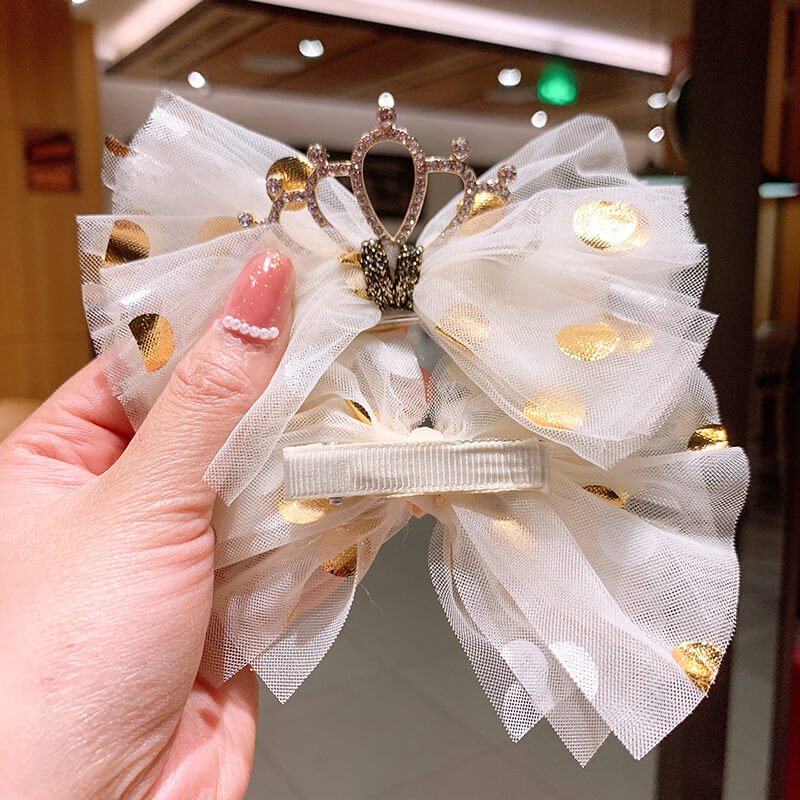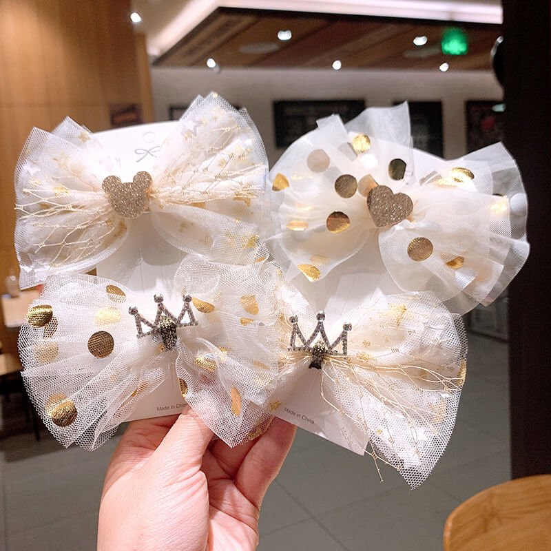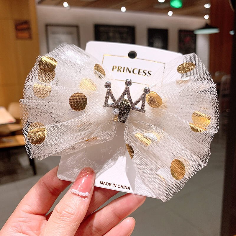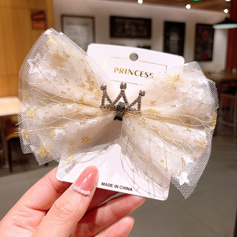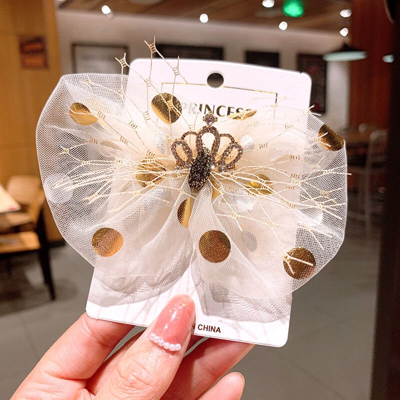 Girls Elegant Crown Bow Shaped Net Yarn Hair Accessories