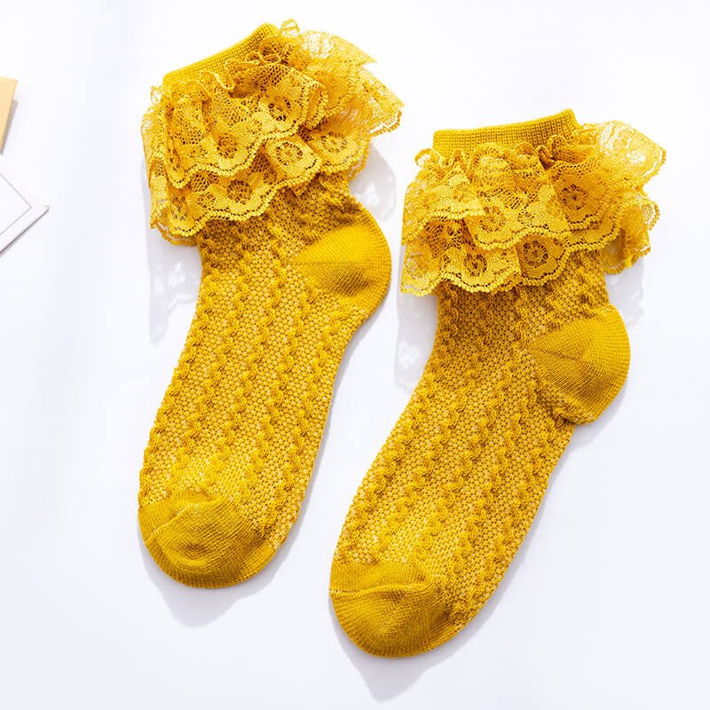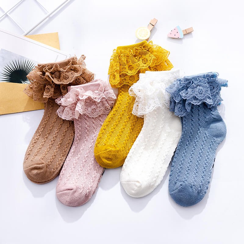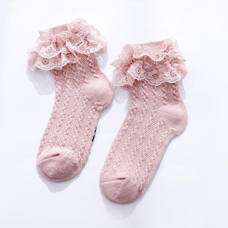 Girls Elegant Solid Color Lace Decorated Breathable Socks