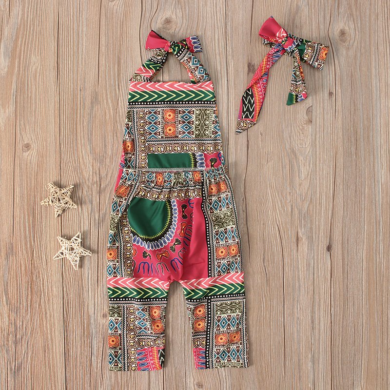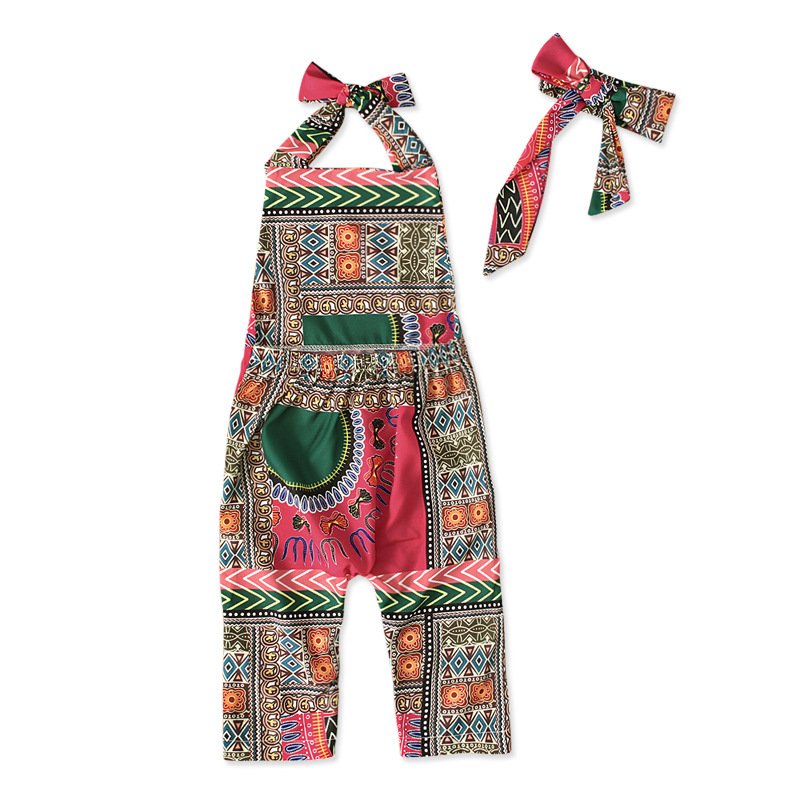Girls Fashion Bohemian Style Jumpsuit With Headband Set
