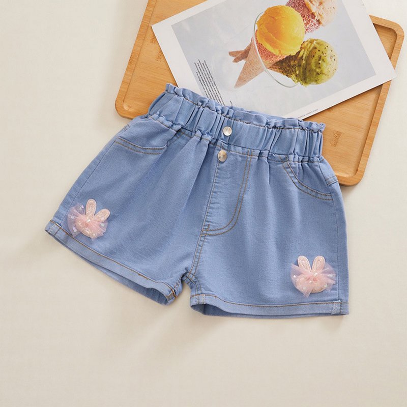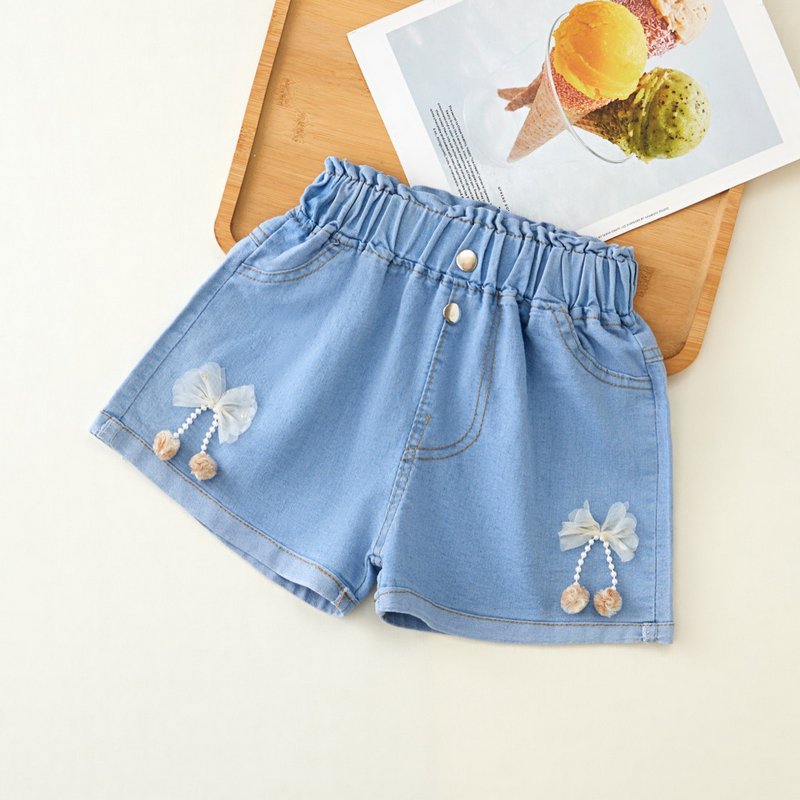 Girls Fashion Bow Denim Shorts