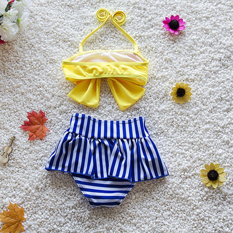 Girls Fashion Bowknot Deocor Tops And Striped Bottoms Set