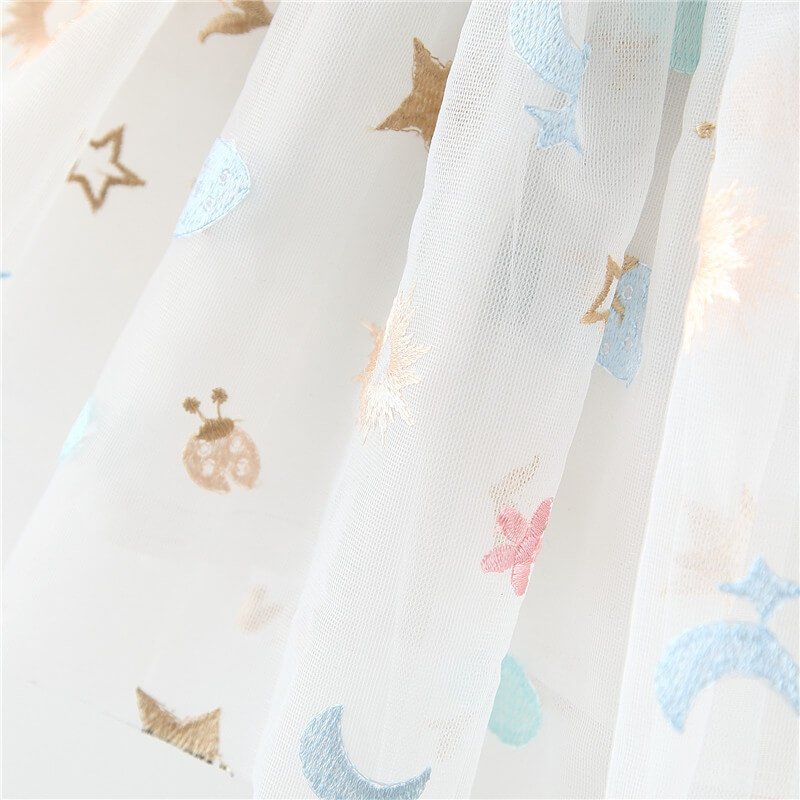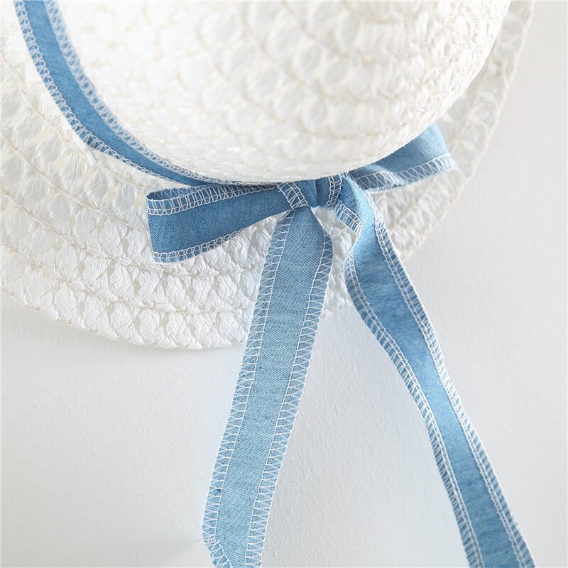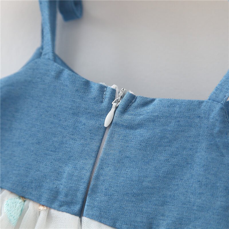 Girls Fashion Bowknot Design Denim Mesh Patchwork Dress With Hat