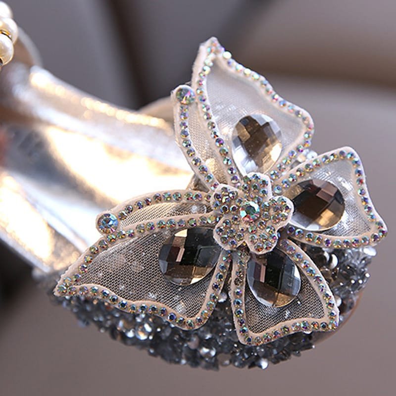 Girls Fashion Bowknot Diamond Decoration Velcro Design Casual Sandals