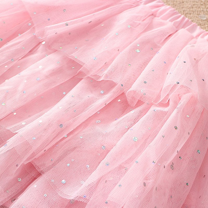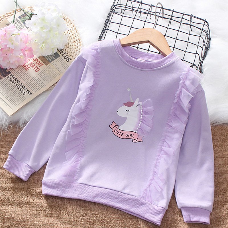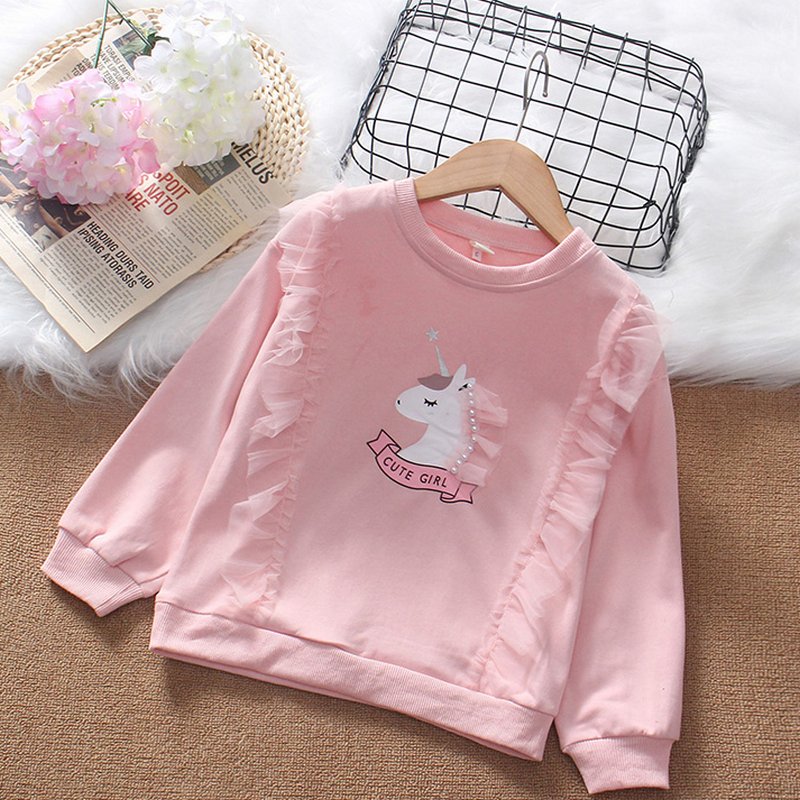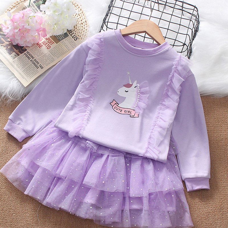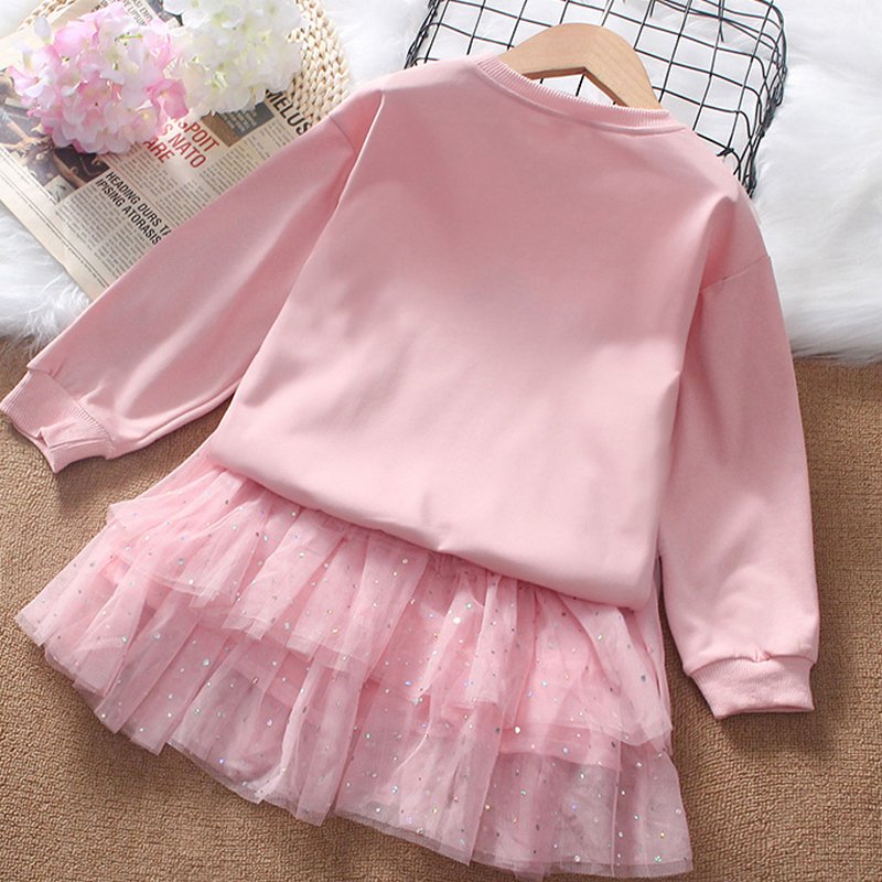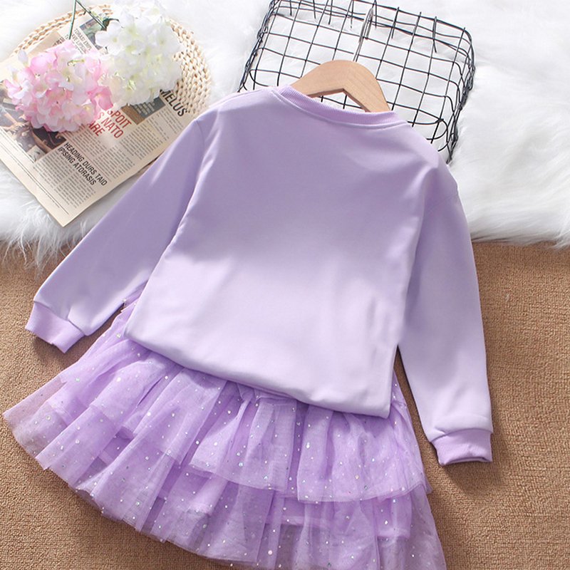 Girls Fashion Cartoon Pattern Sweatshirt And Mesh Skirt Set