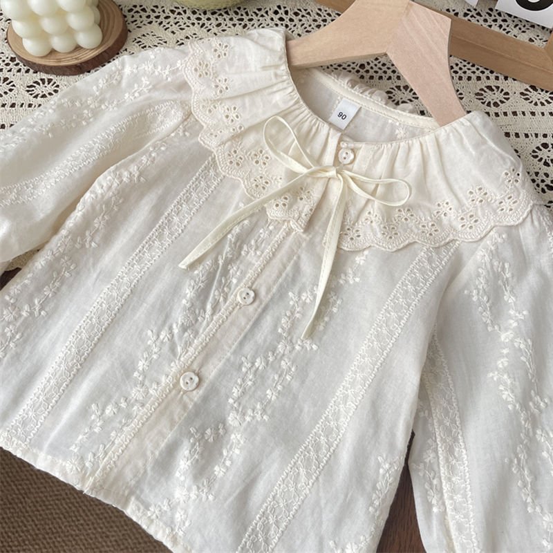 Girls Fashion Casual Lace Long-Sleeve Blouse